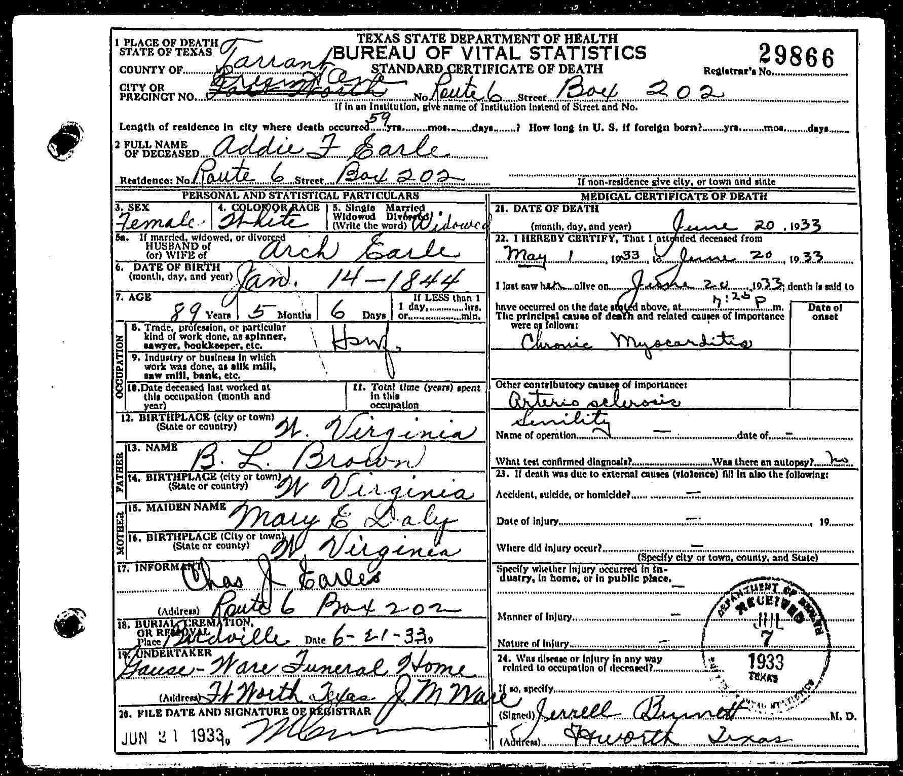born: 29 Jun 1872 - Audrain, Missouri died: 7 Jun 1947 - Prairie, Missouri | ||