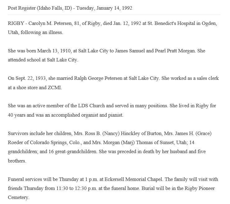 | m. Ralph George Petersen - Married: 22 Sep 1933 - Salt Lake City, Salt Lake, Utah | ||||||||||