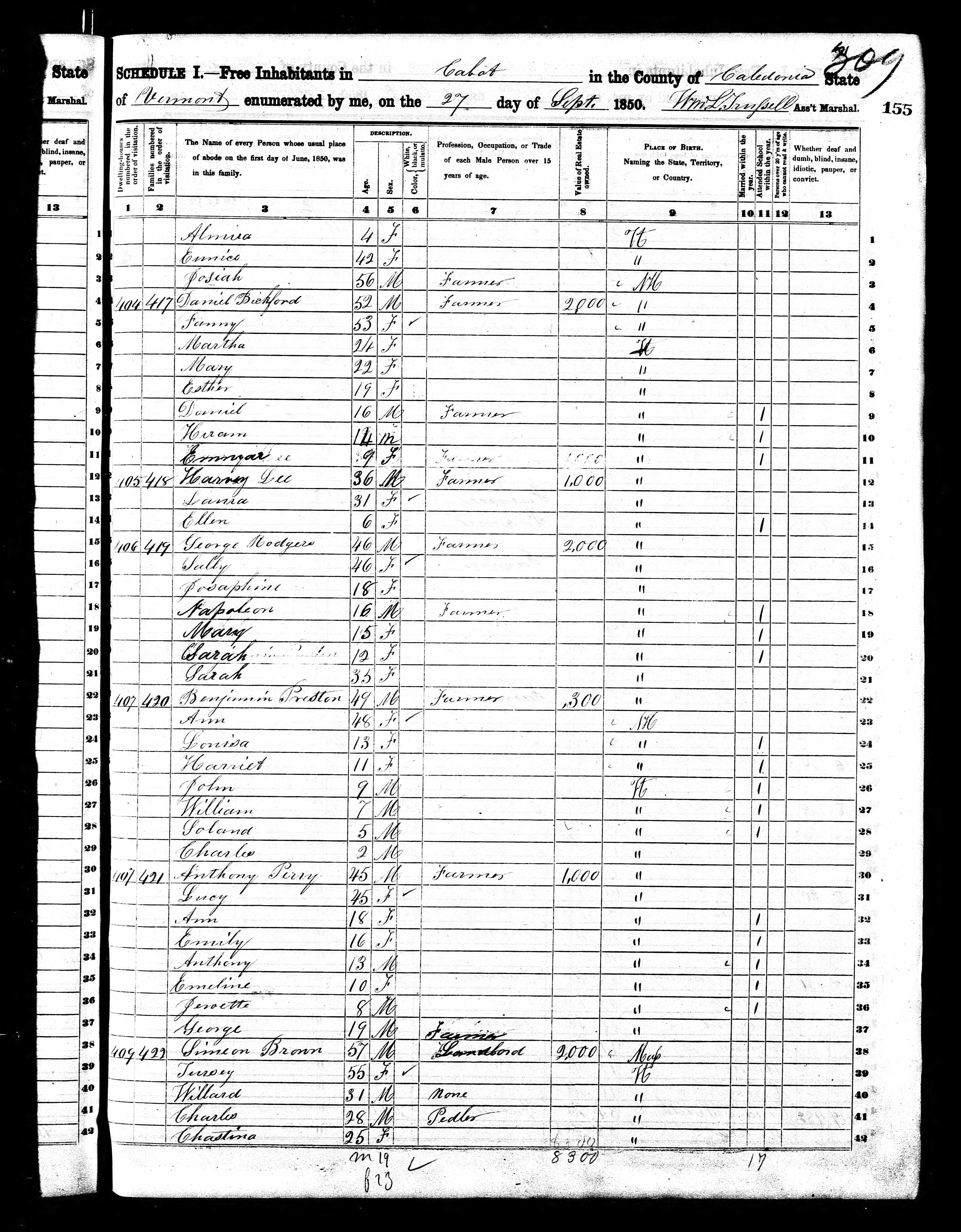 | - Census: 1850, 1860, 1880, 1900 | ||