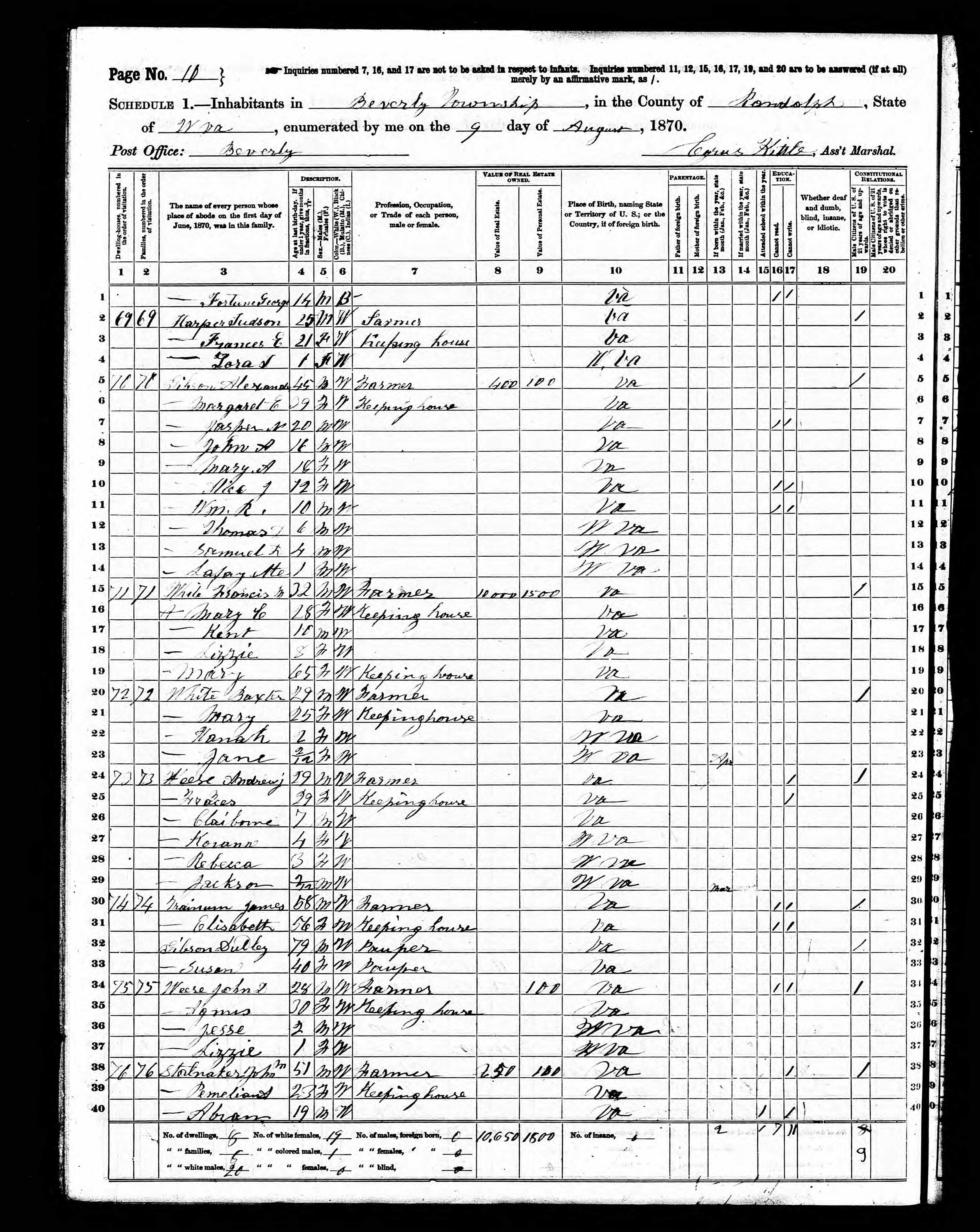 | - Census: 1850, 1860, 1870, 1900, 1910, 1920, 1930 | ||