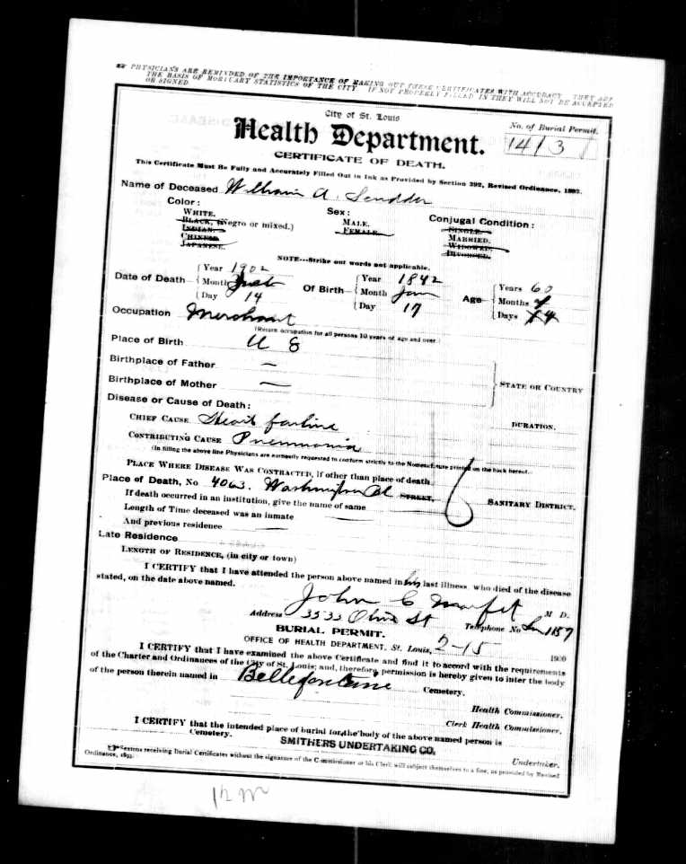 born: 14 Feb 1857 - St Louis, Missouri died: 5 Dec 1949 - St Louis, Missouri buried: Bellefontaine Cemetery, 4947 West Florissant Ave, St Louis, St Louis City, Missouri, USA, 63115-1424 | ||