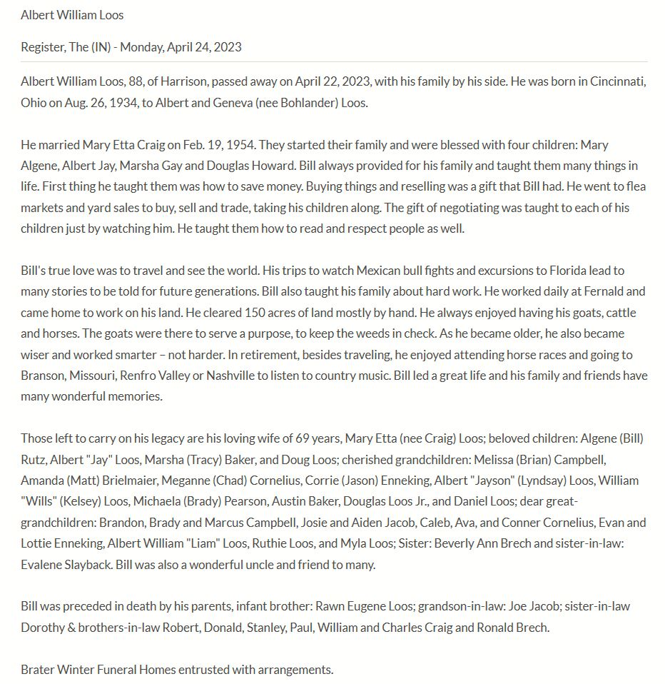 | Son of Albert Joseph Loos III & Geneva M. Bolander | ||