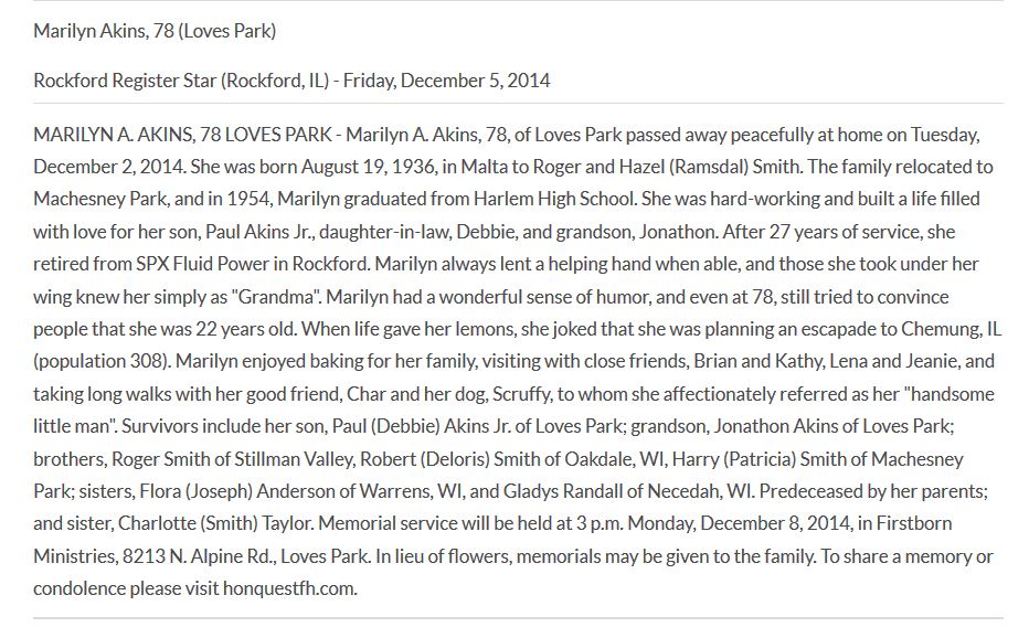 born: 7 Aug 1930 - Illinois died: 21 Mar 1975 - Mount Morris, Ogle, Illinois Buried: Oakwood Cemetery, Mount Morris, Ogle, Illinois, USA | ||||||||