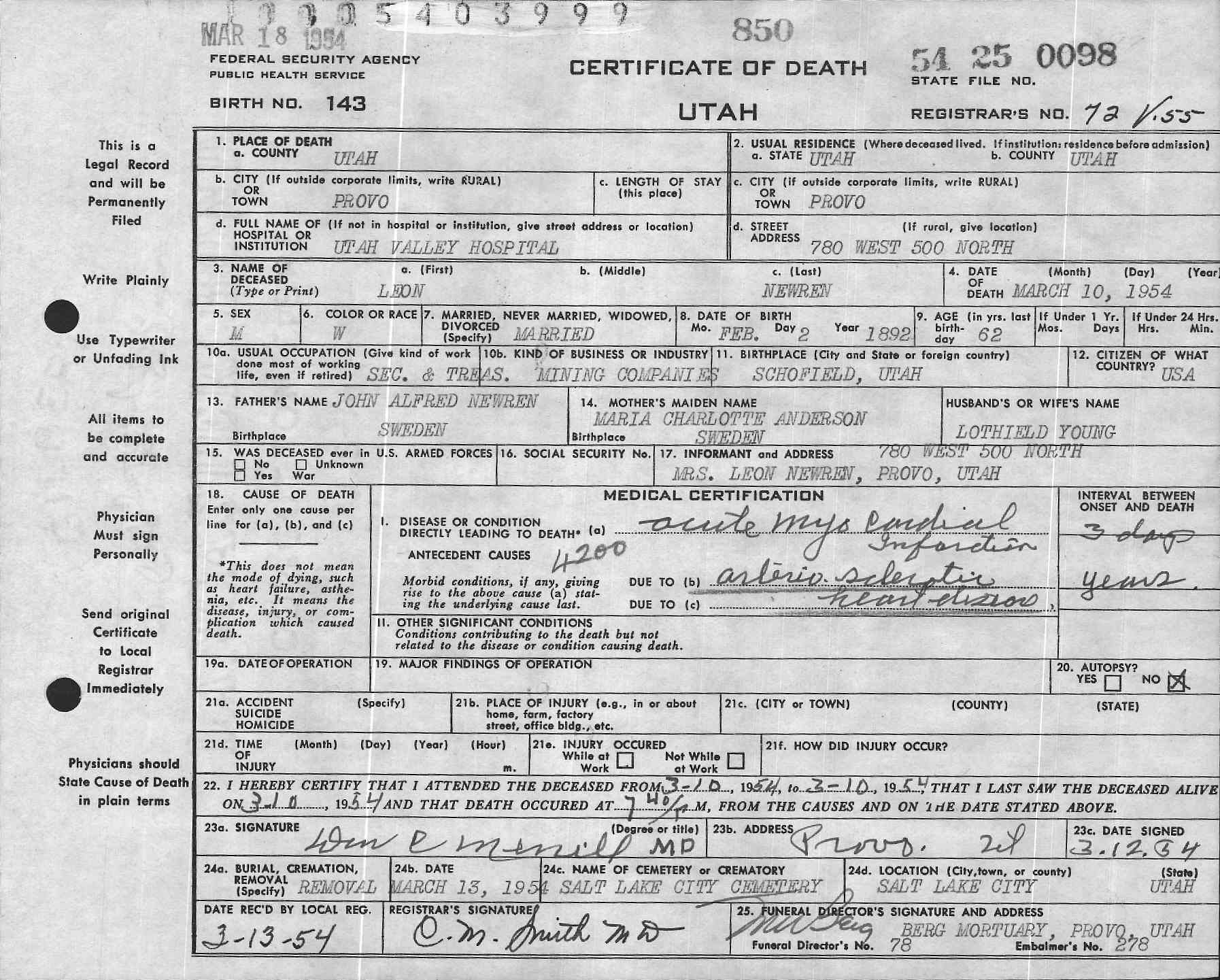 born: 20 Mar 1891 - Paradise, Cache, Utah died: 21 Mar 1950 - Paradise, Cache, Utah buried: Paradise Cemetery, 8900 South 300 East, Paradise, Cache, Utah, USA, 84328 (-V4-) | ||||||||||
