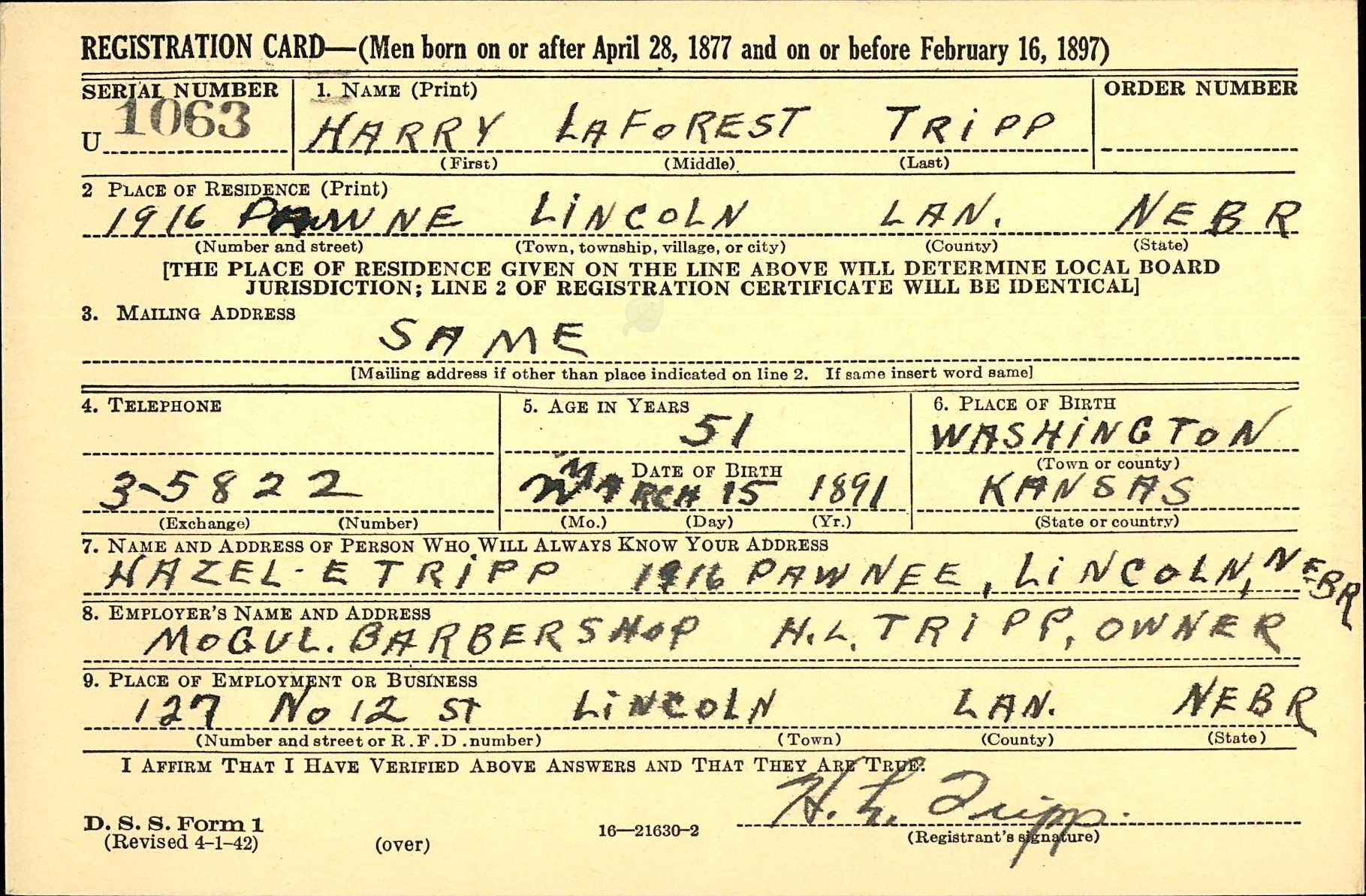 | [----] Harold Ellsworth Tripp (10 Jul 1900 - ) | ||