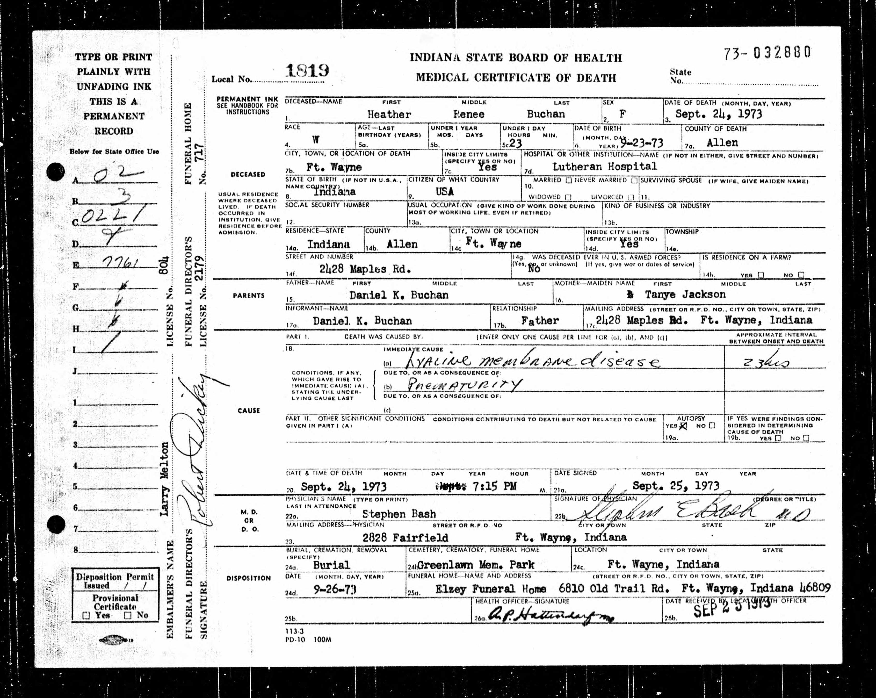 born: 13 Dec 1985 died: 7 Jun 1987 Buried: Roann Community Cemetery, North 700 W, Roann, Wabash, Indiana, USA, 46974 | ||