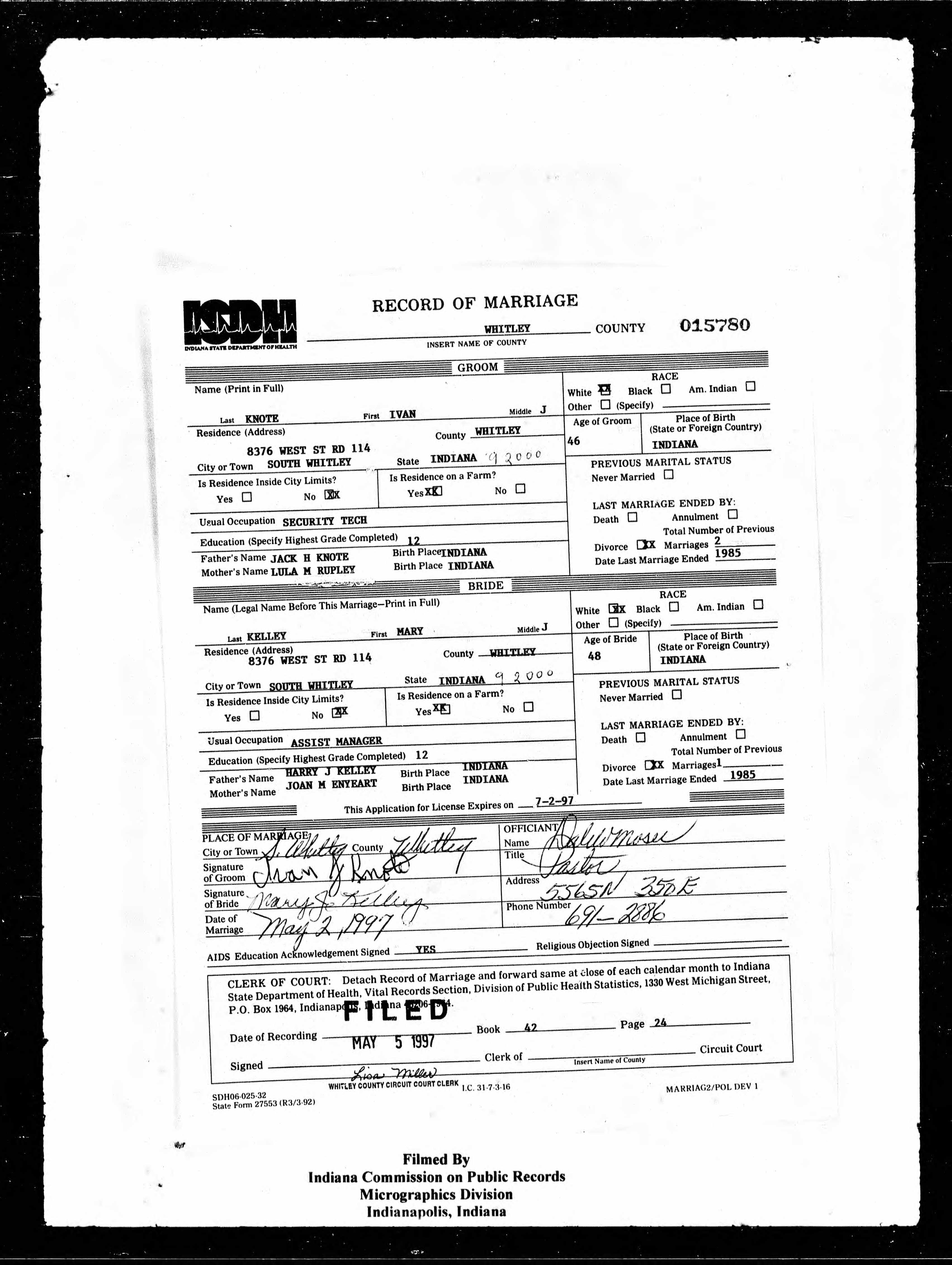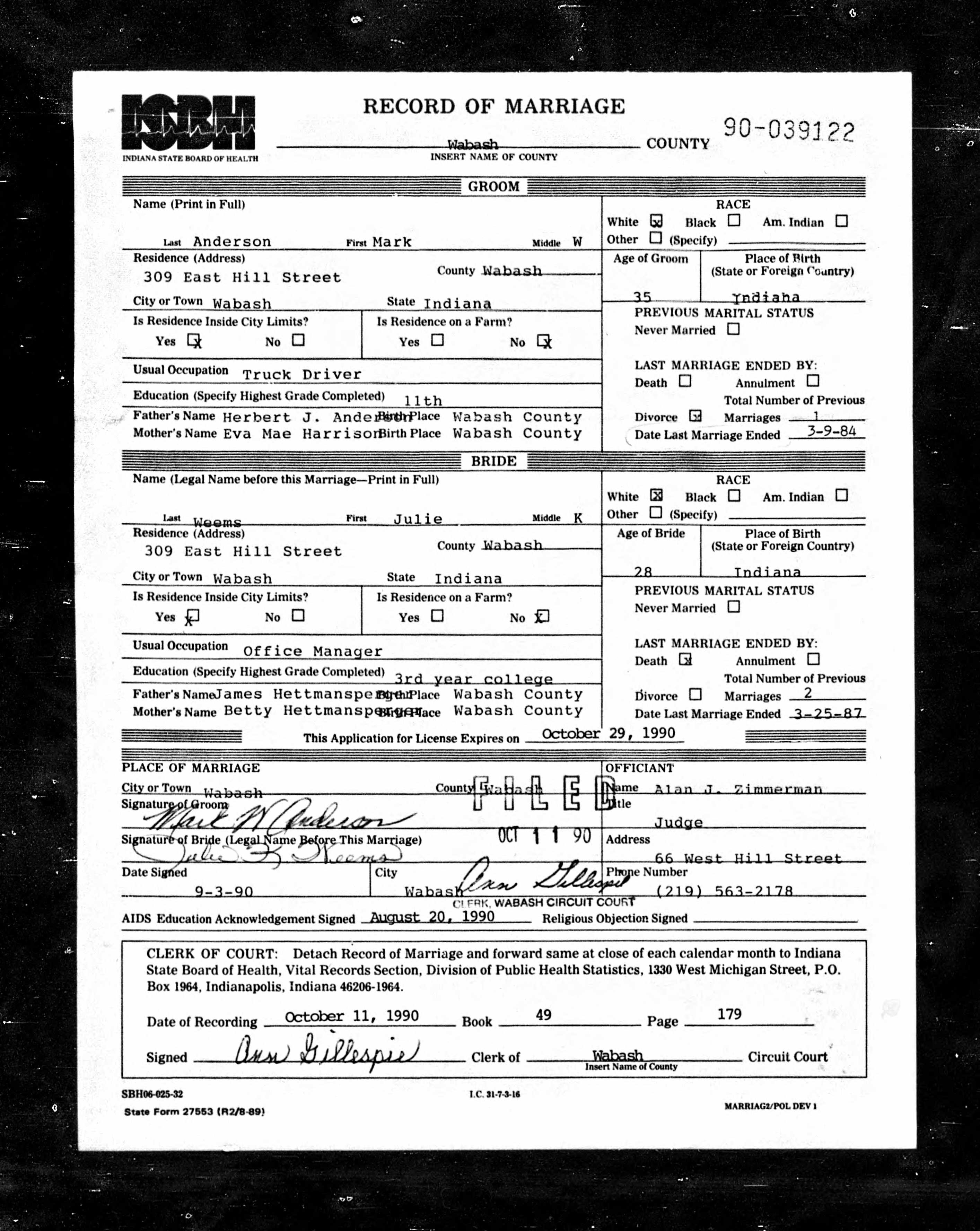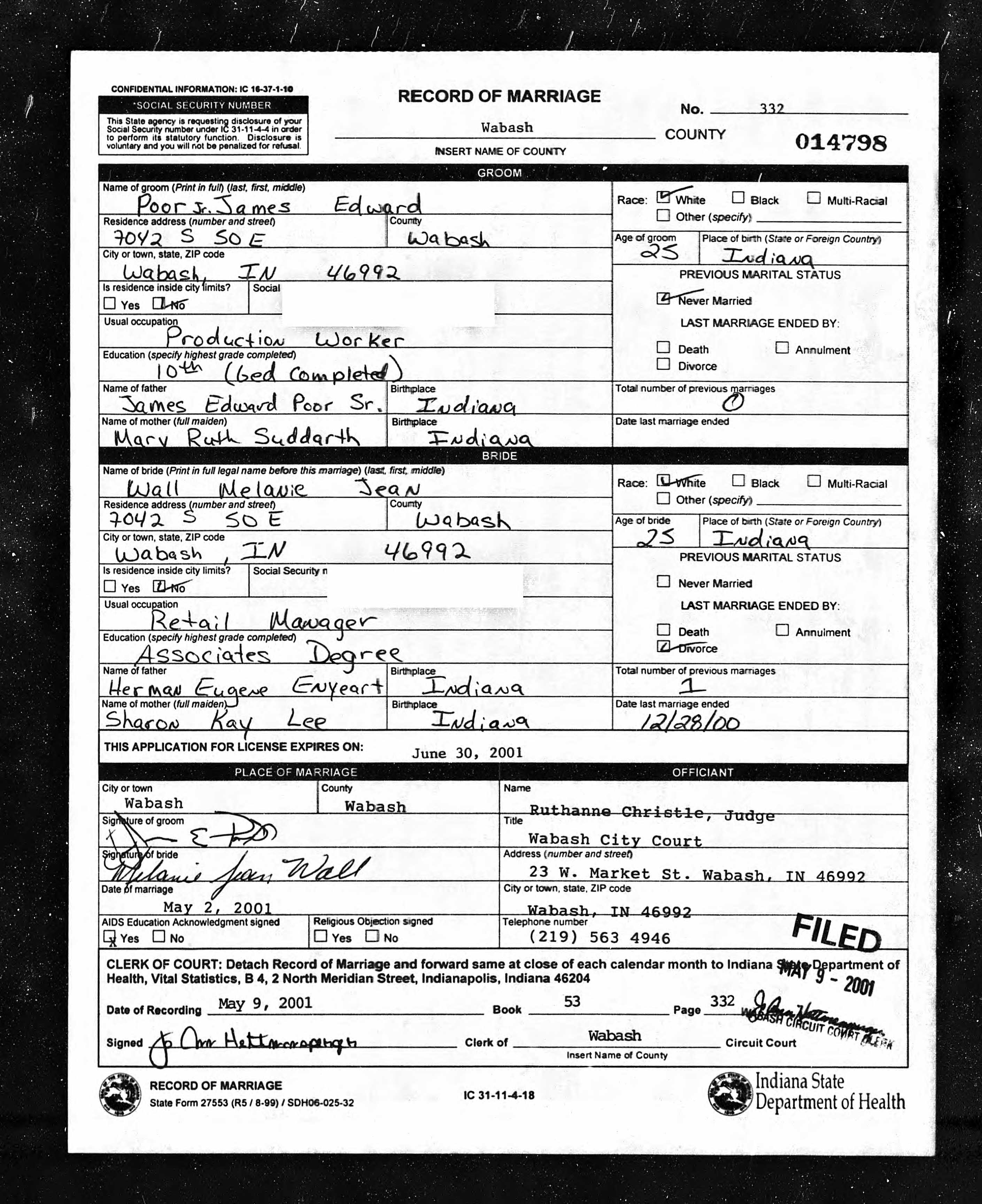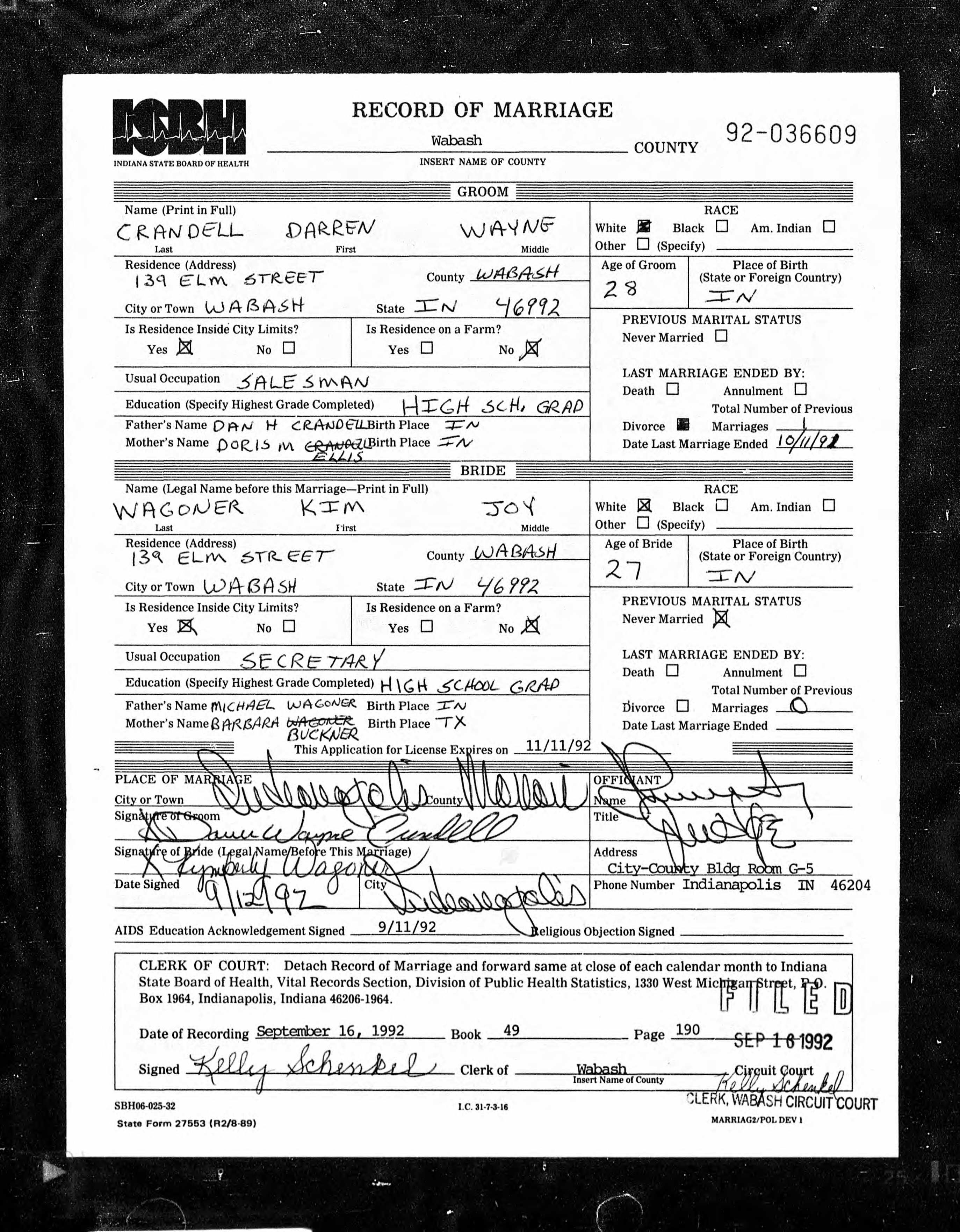 | m. Jolene Kay Walton - Married: 26 Nov 1988 - Crow Wing County, Minnesota | ||