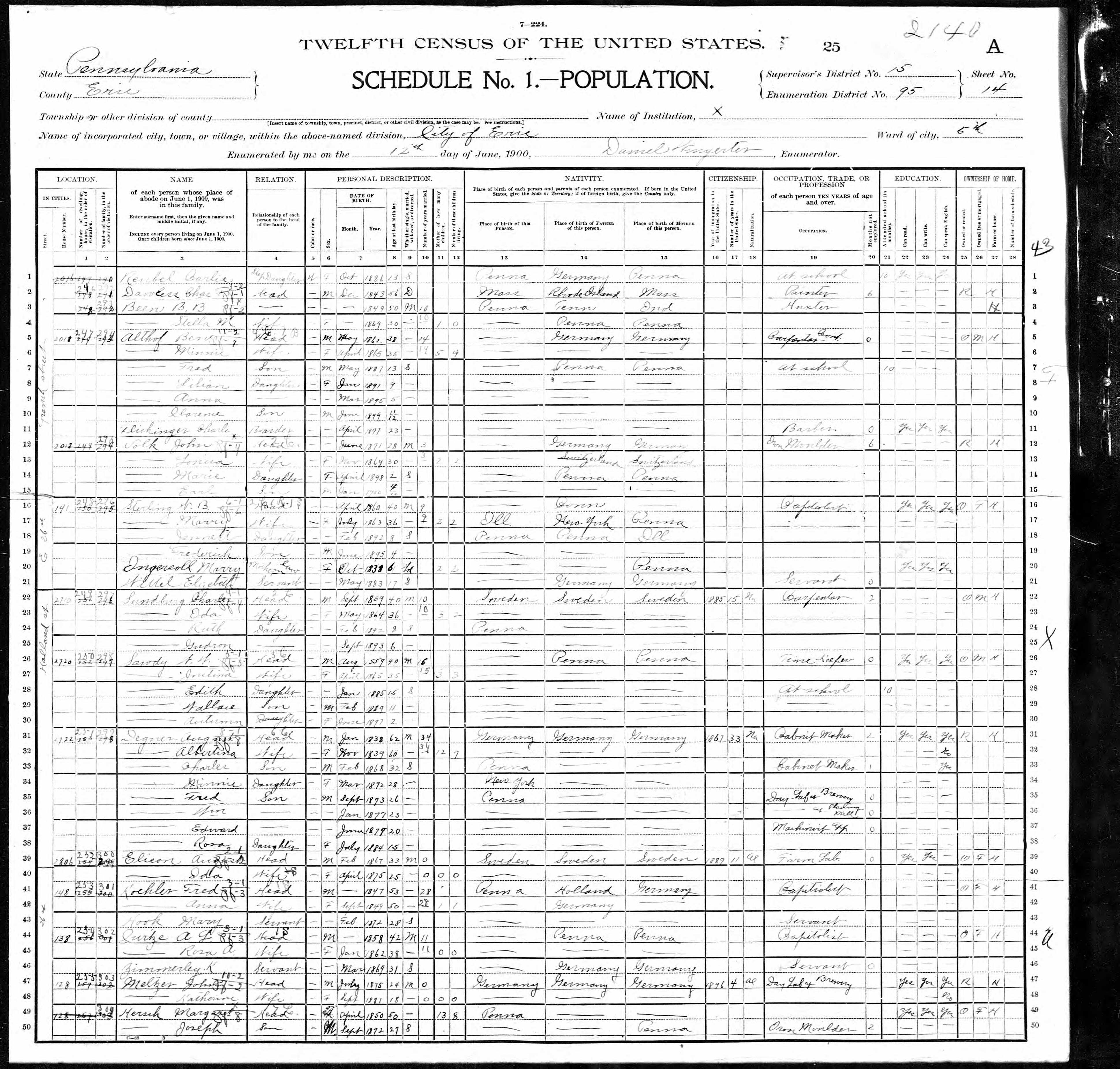 born: 13 Apr 1865 - Oakland, Mercer, Pennsylvania died: 22 Jun 1920 - Erie, Erie, Pennsylvania buried: Erie Cemetery, 2116 Chestnut Street, Erie, Erie, Pennsylvania, USA, 16502 (27-247-) | ||
