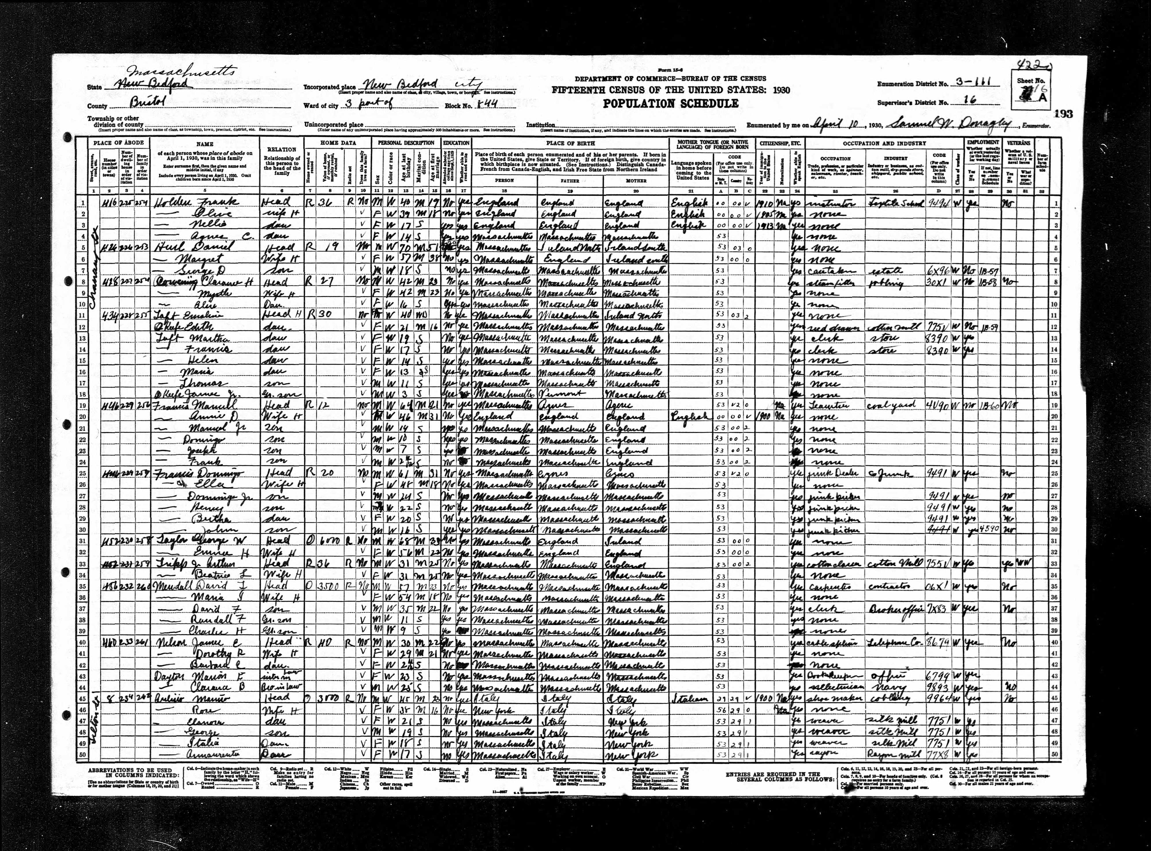 | - Census: 1900, 1910, 1920, 1930 | ||||||||||