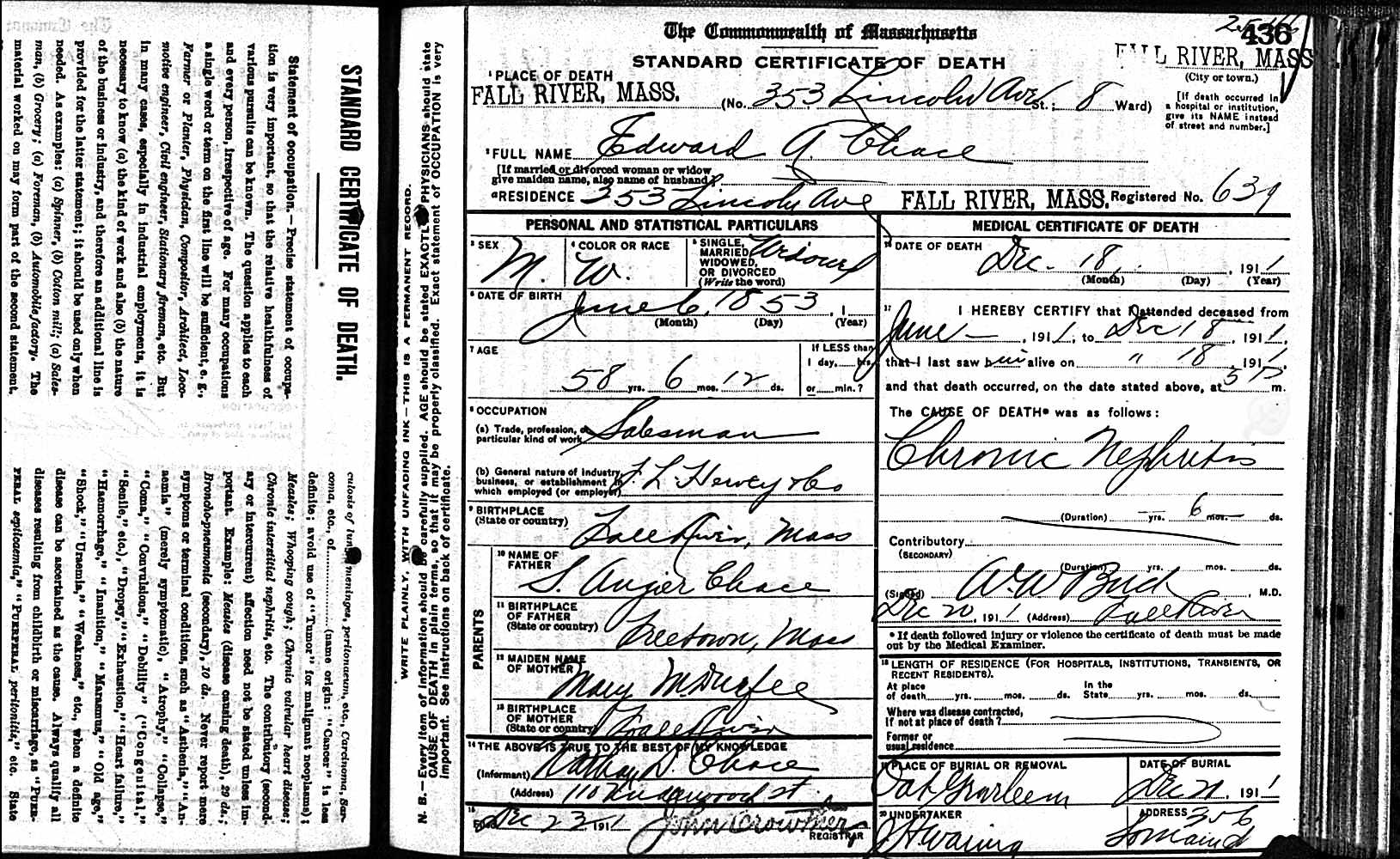 born: 24 Aug 1869 - Fall River, Bristol, Massachusetts | ||