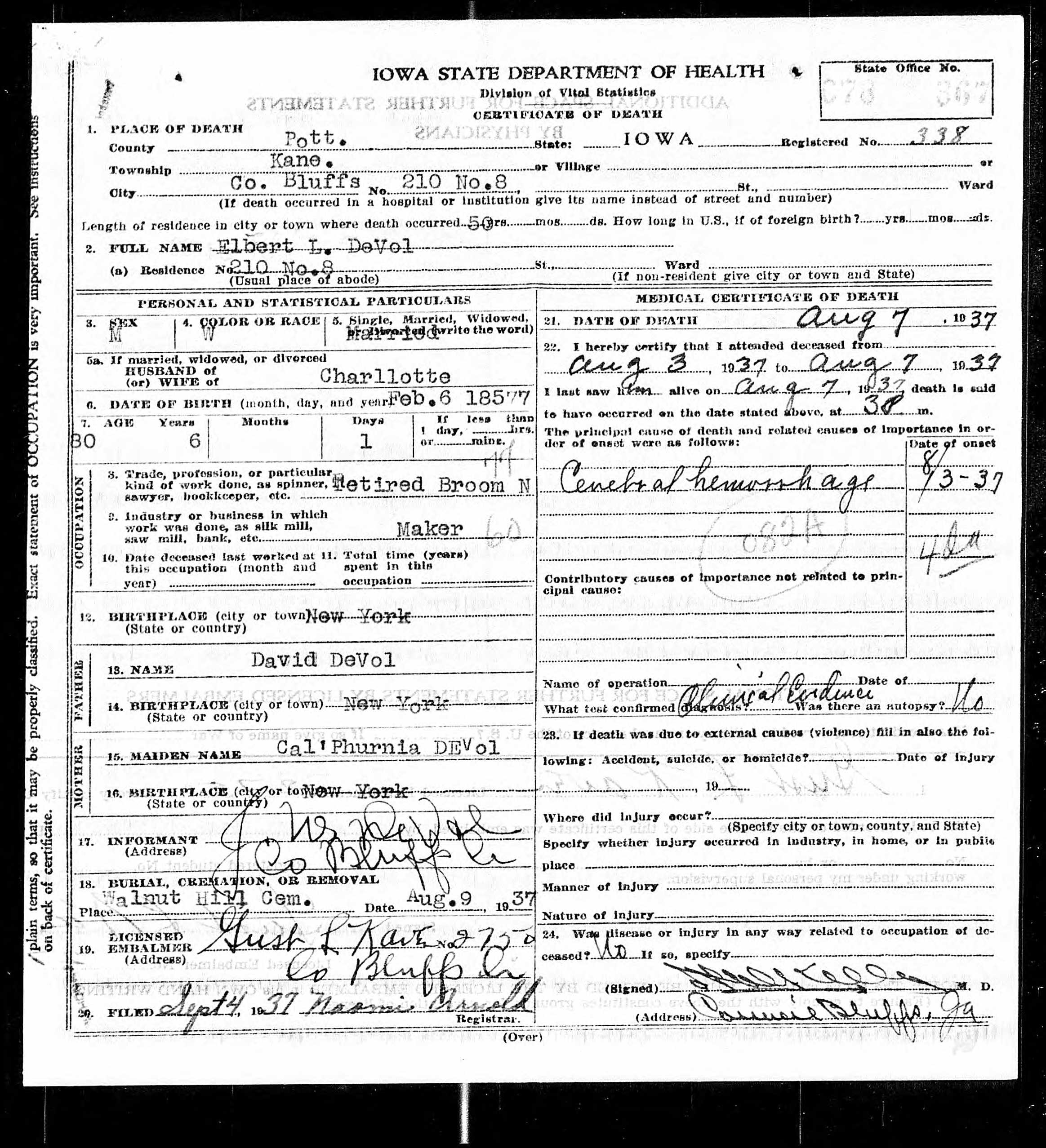 | Daughter of Justus B. DeForest & Carrie R. Brown | ||||||||||