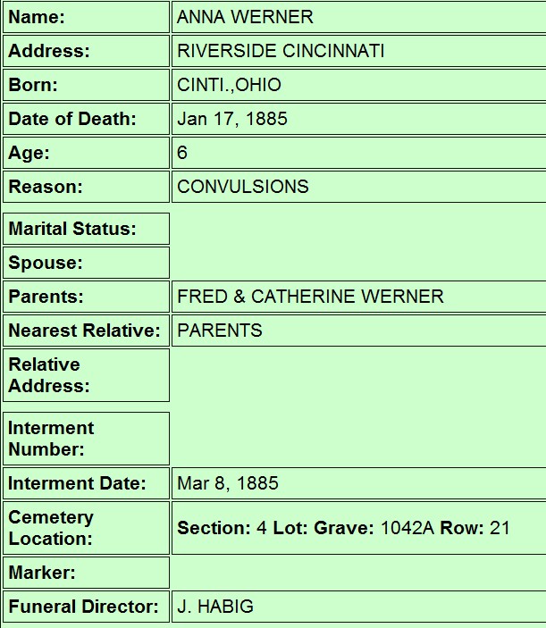 | [23] Anna Werner (1879 - 17 Jan 1885) | ||