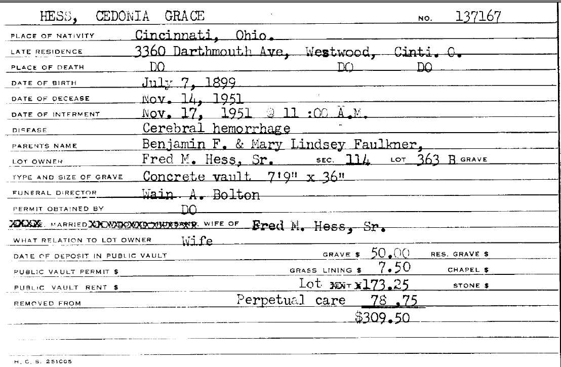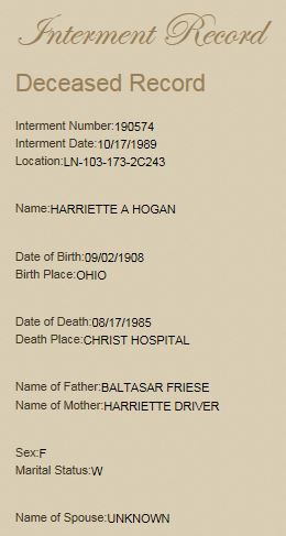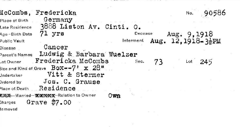born: Aug 1837 - Baden, Germany died: 22 Sep 1906 buried: Walnut Hills Cemetery, 3117 Victory Parkway, Cincinnati, Hamilton, Ohio, USA, 45206 (25-14-184) | ||