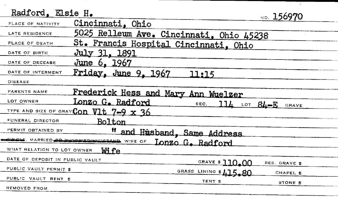 born: 4 May 1844 - Malden, Canada died: 16 Mar 1929 - Cincinnati, Hamilton, Ohio buried: Spring Grove Cemetery, 4521 Spring Grove Ave, Cincinnati, Hamilton, Ohio, USA (073-245-17) | ||