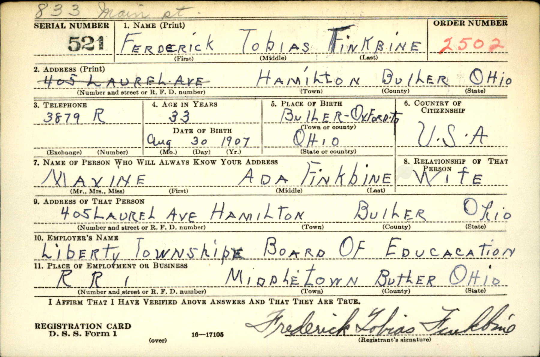 Residences1907 - Oxford, Butler, Ohio | 1910 - Oxford, Butler, Ohio 1920 - Oxford, Butler, Ohio 1930 - Oxford, Butler, Ohio 1940 - Hamilton, Butler, Ohio 1998 - Hamilton, Butler, Ohio |