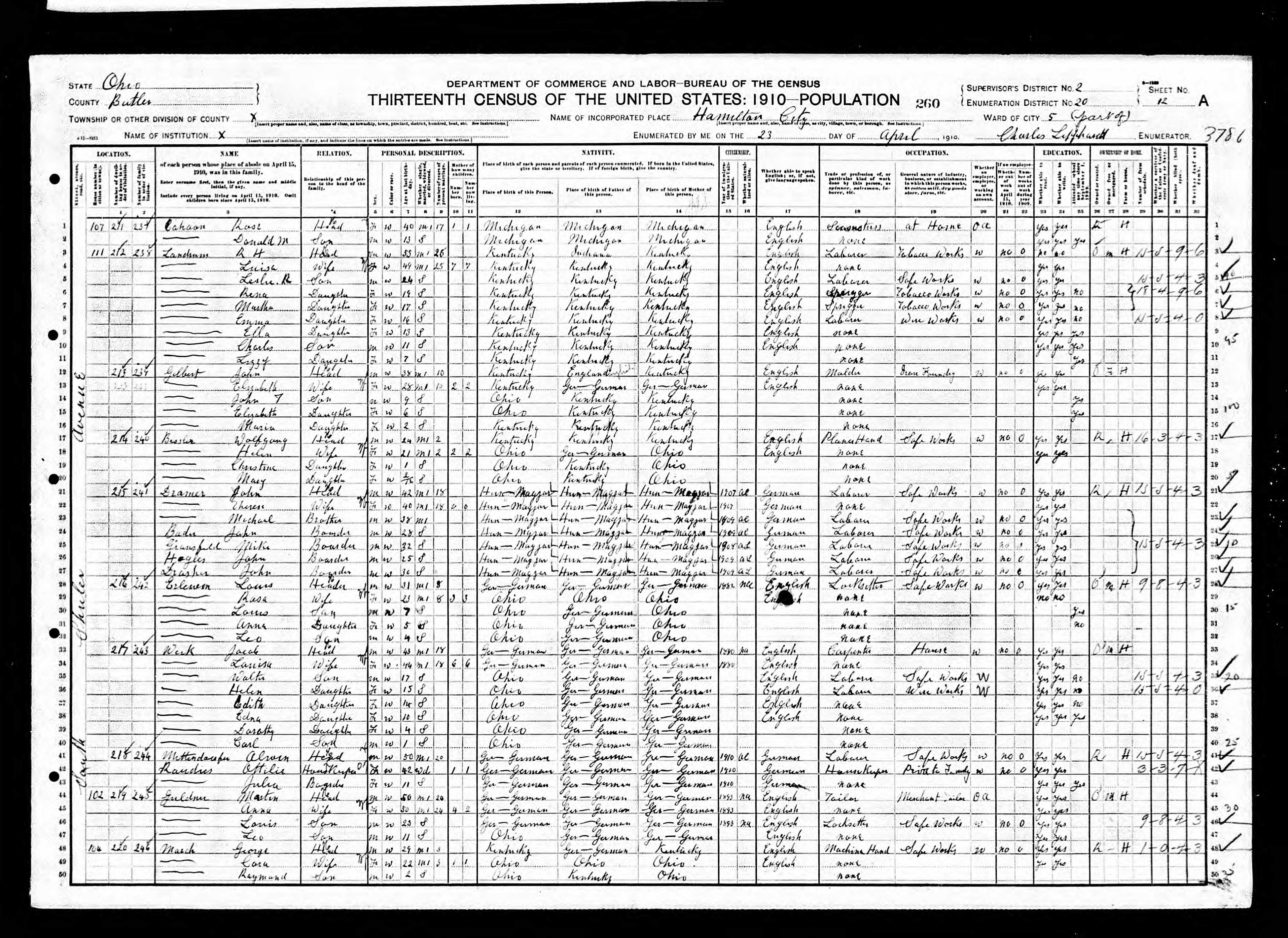 Residences1908 - Hamilton, Butler, Ohio | 1910 - Hamilton, Butler, Ohio 1920 - Fairfield, Butler, Ohio 1930 - Delhi, Hamilton, Ohio 1995 - Mount Saint Joseph, Hamilton, Ohio |