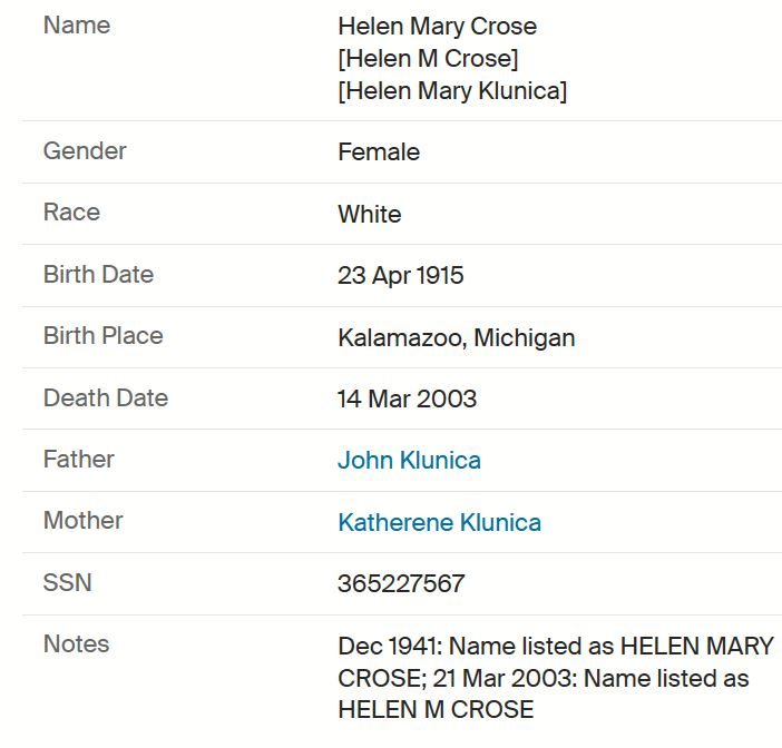 Residences1909 - Schoolcraft, Kalamazoo, Michigan | 1920 - Schoolcraft, Kalamazoo, Michigan 1930 - Brady, Kalamazoo, Michigan 1940 - Kalamazoo, Kalamazoo, Michigan 1950 - Kalamazoo, Kalamazoo, Michigan 1960 - Kalamazoo, Kalamazoo, Michigan |