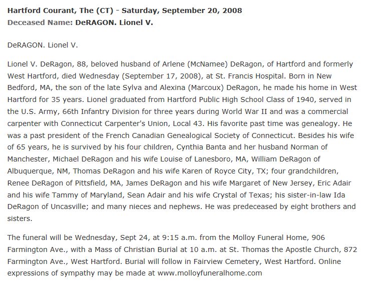 | 8 Mar 1920 | 17 Sep 2008 | 88y 6m 9d | Lionel Victor DeRagon | |||||||||