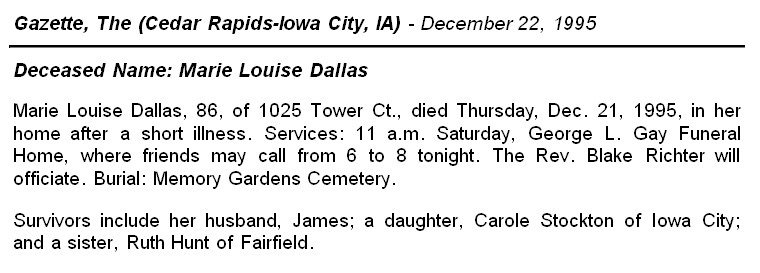 | 25 Feb 1909 | 5 Sep 2001 | 92y 6m 10d | Hillcrest | 127 | 3 | James Harley Dallas | ||||||