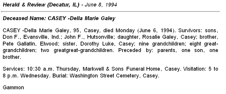 | 19 May 1899 | 6 Jun 1994 | 95y 0m 17d | Della Marie Gallatin | |||||||||