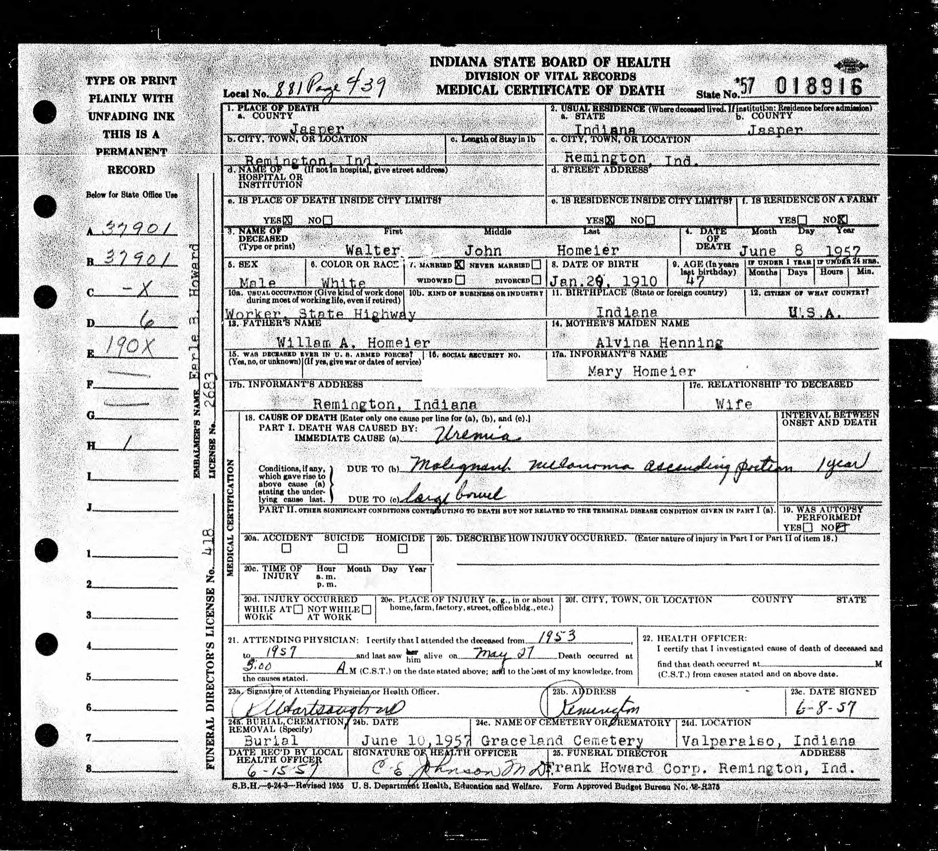 | Homeier, Walter J. | Jan 1910 | 8 Jun 1957 | 47y 5m | Northview | 316 | Walter John Homeier | ||||||