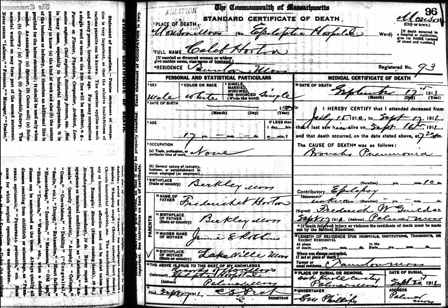 | Horton, Caleb | 29 Mar 1894 | 17 Sep 1911 | 17y 5m 18d | Caleb Isaac Horton | ||||||||