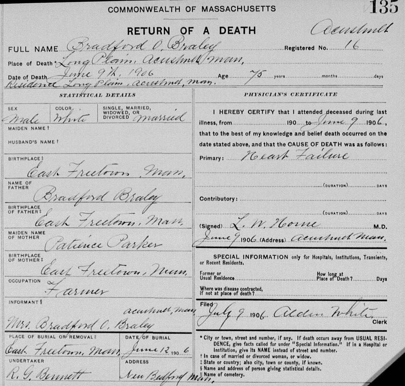 Philo L. Braley | Son of Dr Bradford & Patience P. Braley |