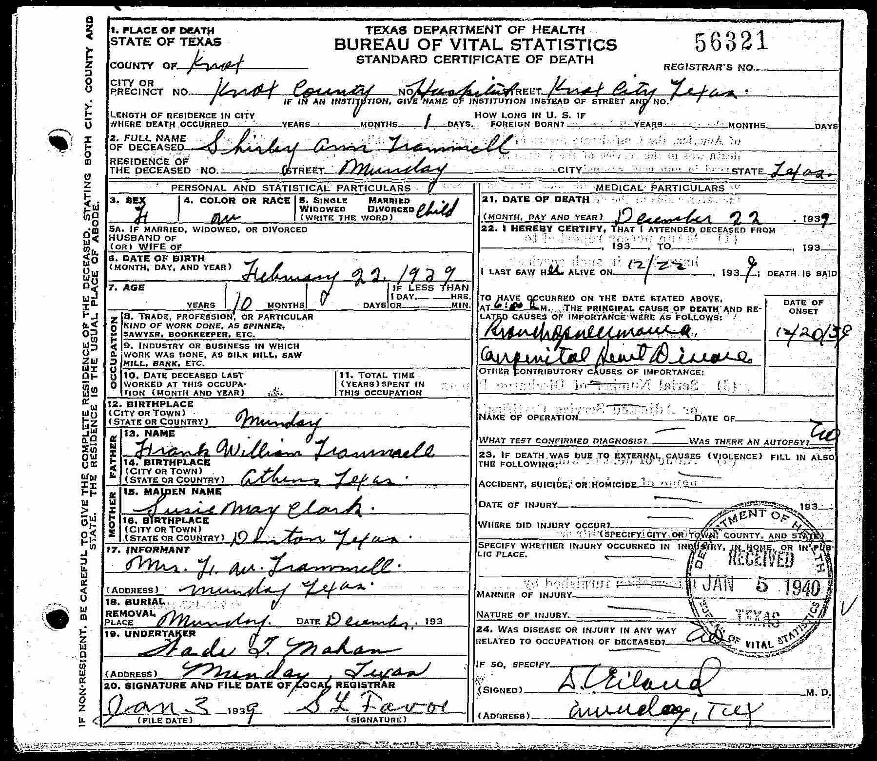 | Trammell, Shirley Ann | 22 Feb 1939 | 22 Dec 1939 | 10m 0d | Shirley Ann Trammell | ||||||||