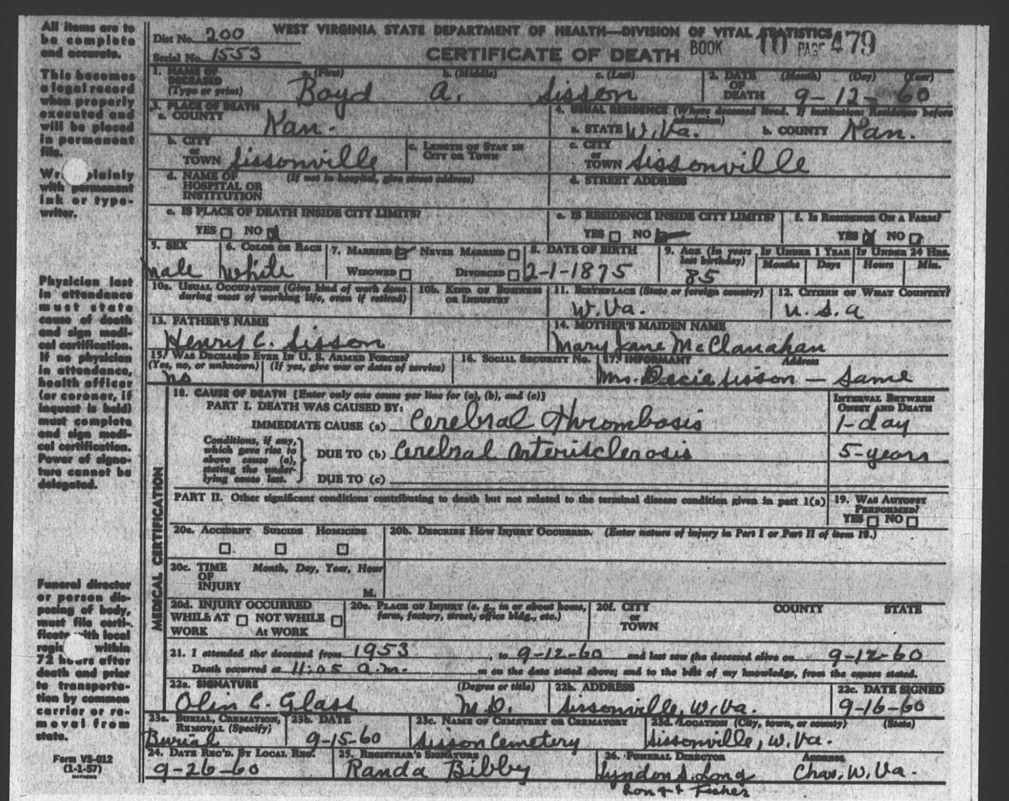 | 1 Feb 1875 | 12 Sep 1960 | 85y 7m 11d | Boyd A. Sisson | |||||||||