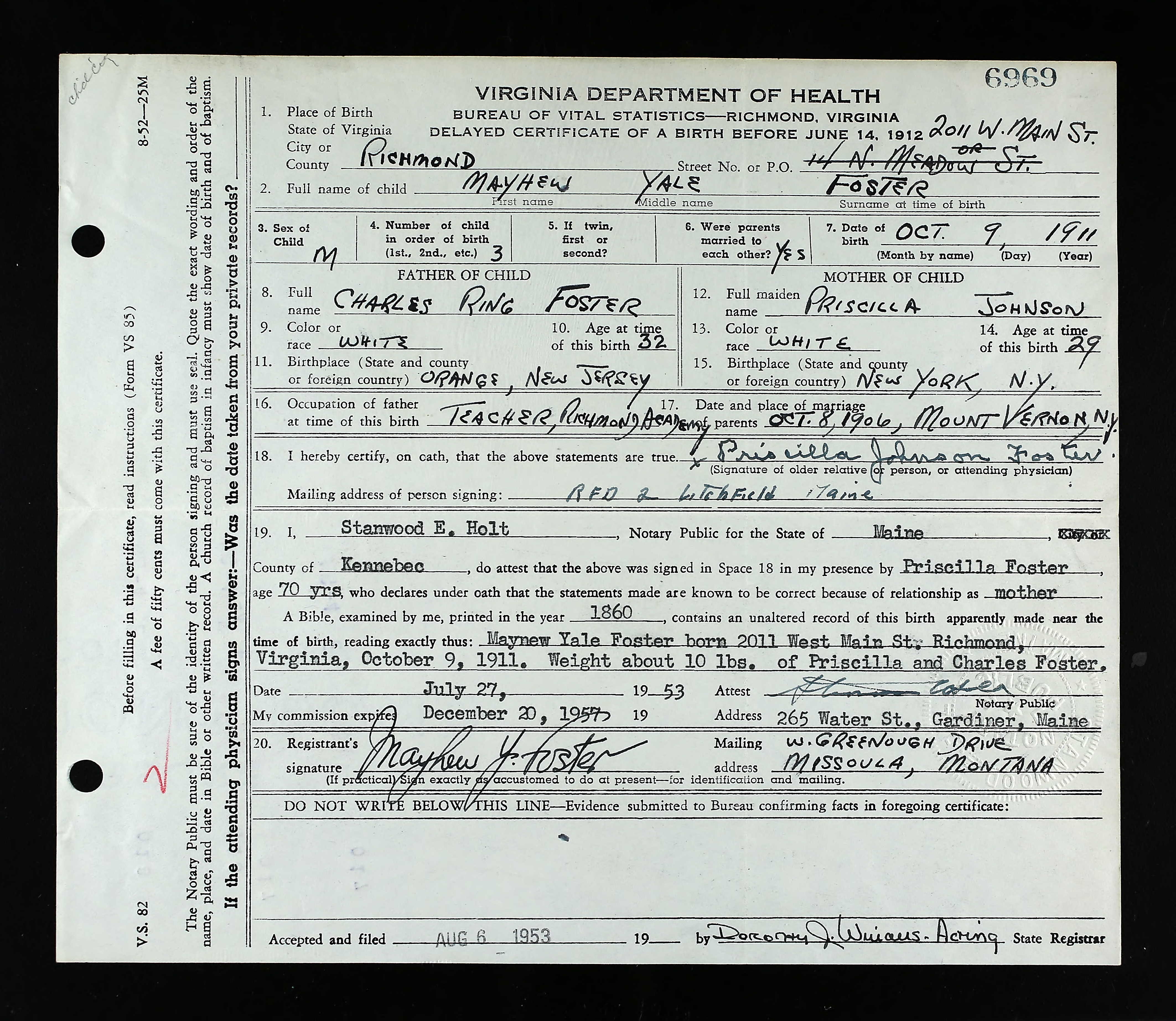 Residences1916 - Wallace, Shoshone, Idaho | 1920 - Troy, Lincoln, Montana 1930 - Missoula, Missoula, Montana 1940 - Mission, Lake, Montana 1950 - Missoula, Missoula, Idaho 1993 - , Missoula, Missoula, Montana, USA |