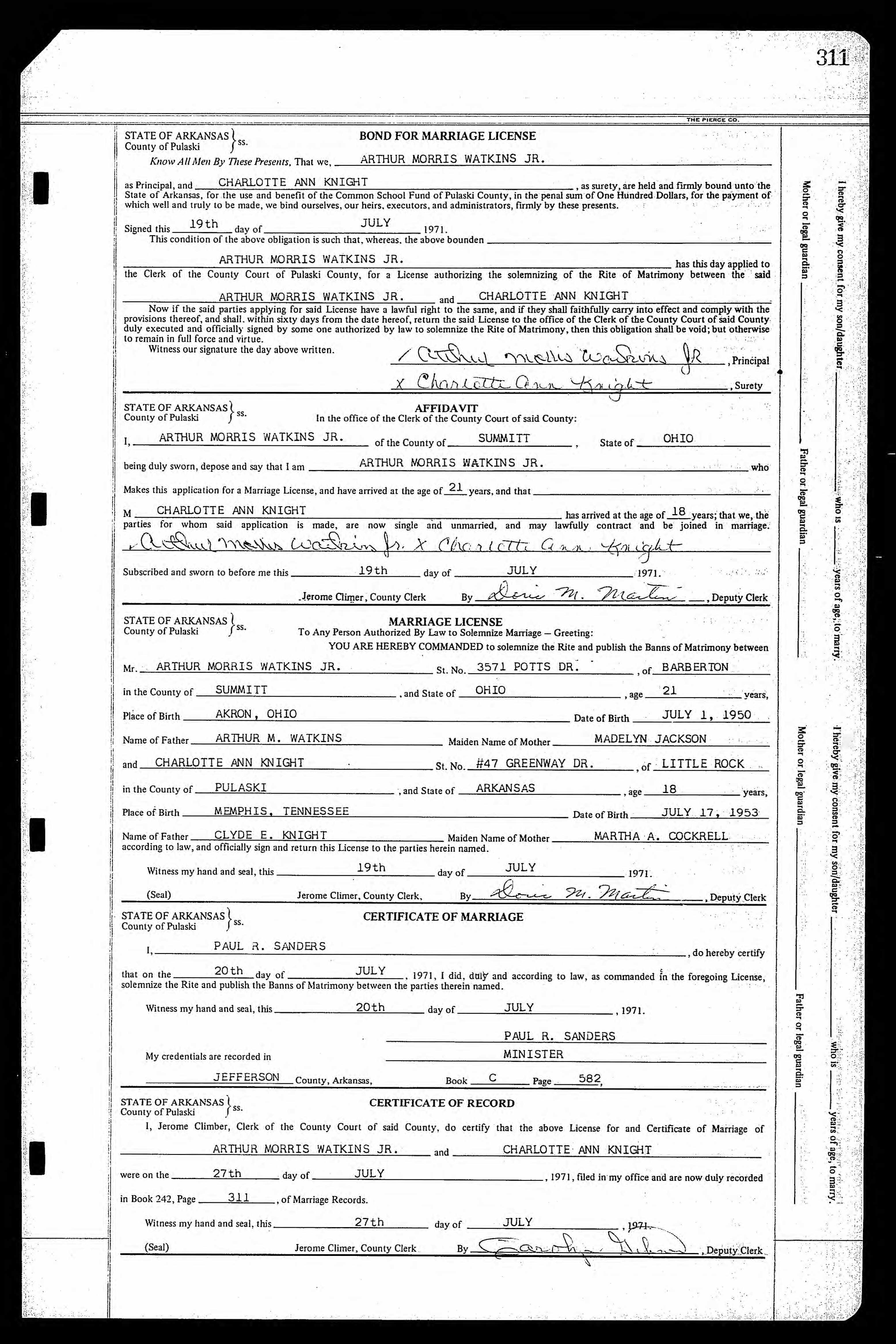 Arthur Mores Watkins Jr - Charlotte Ann Knight