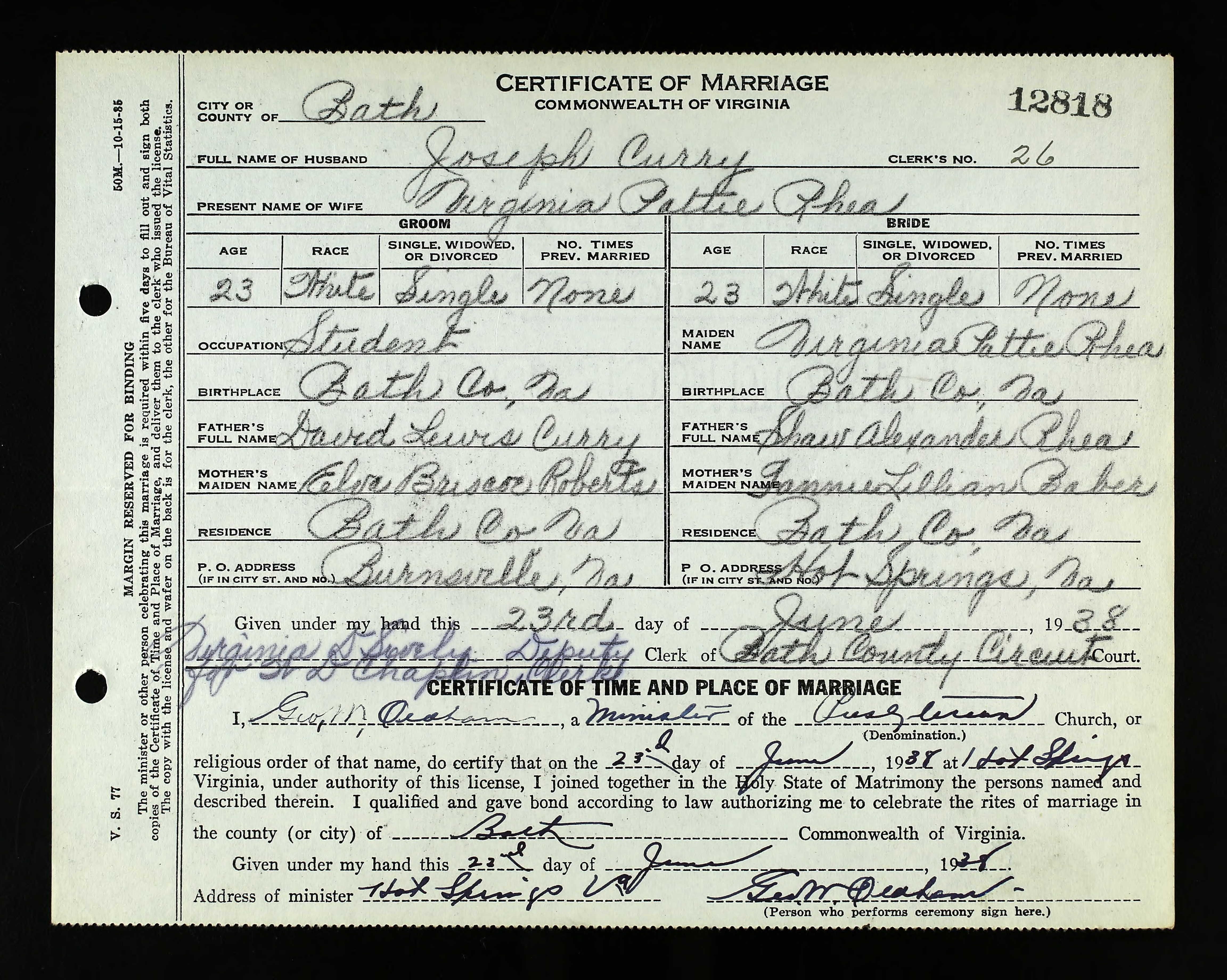 | 23 Jun 1938 - Hot Springs, Bath, Virginia | |