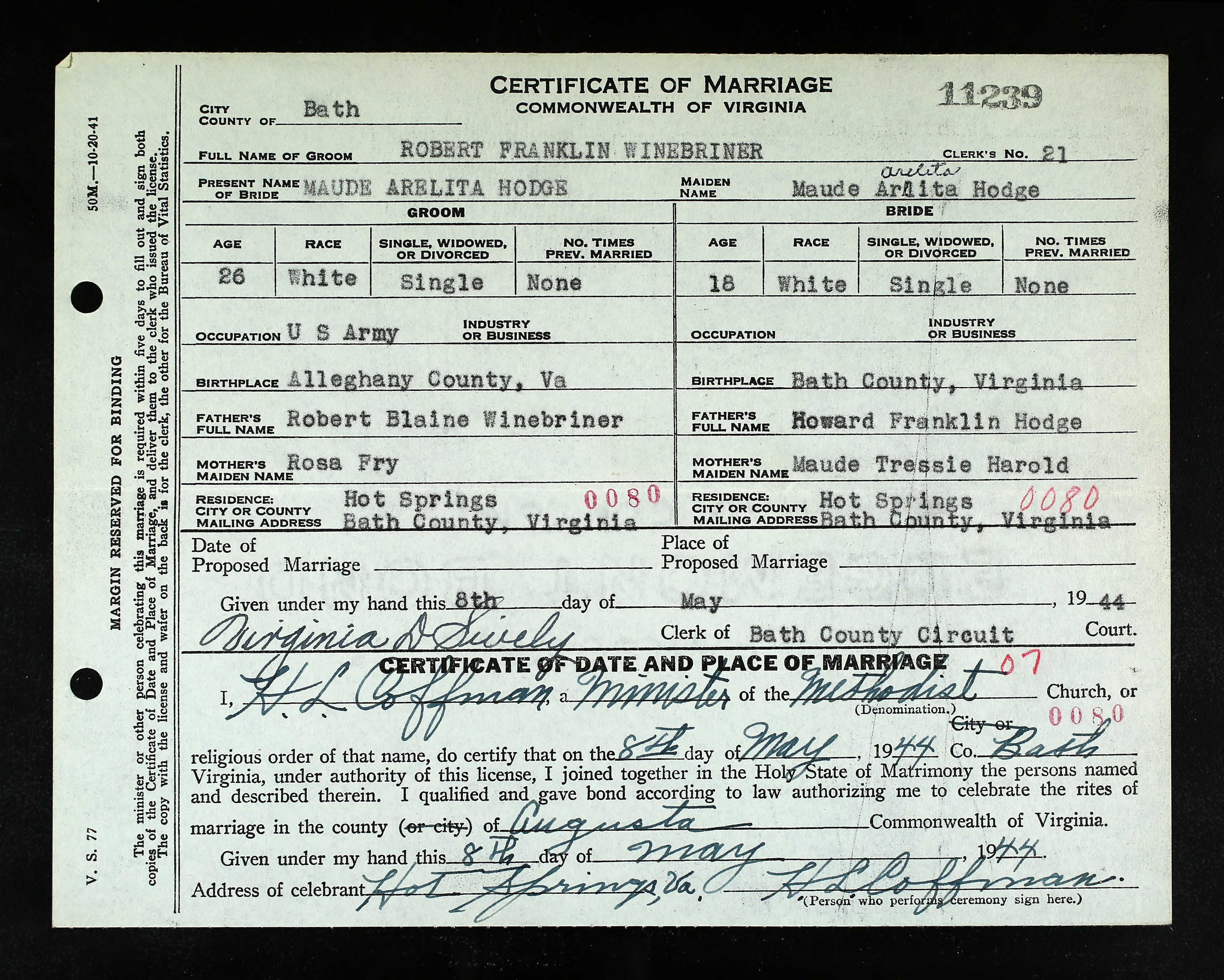 Maude Arelita Hodge - Robert Franklin Winebriner