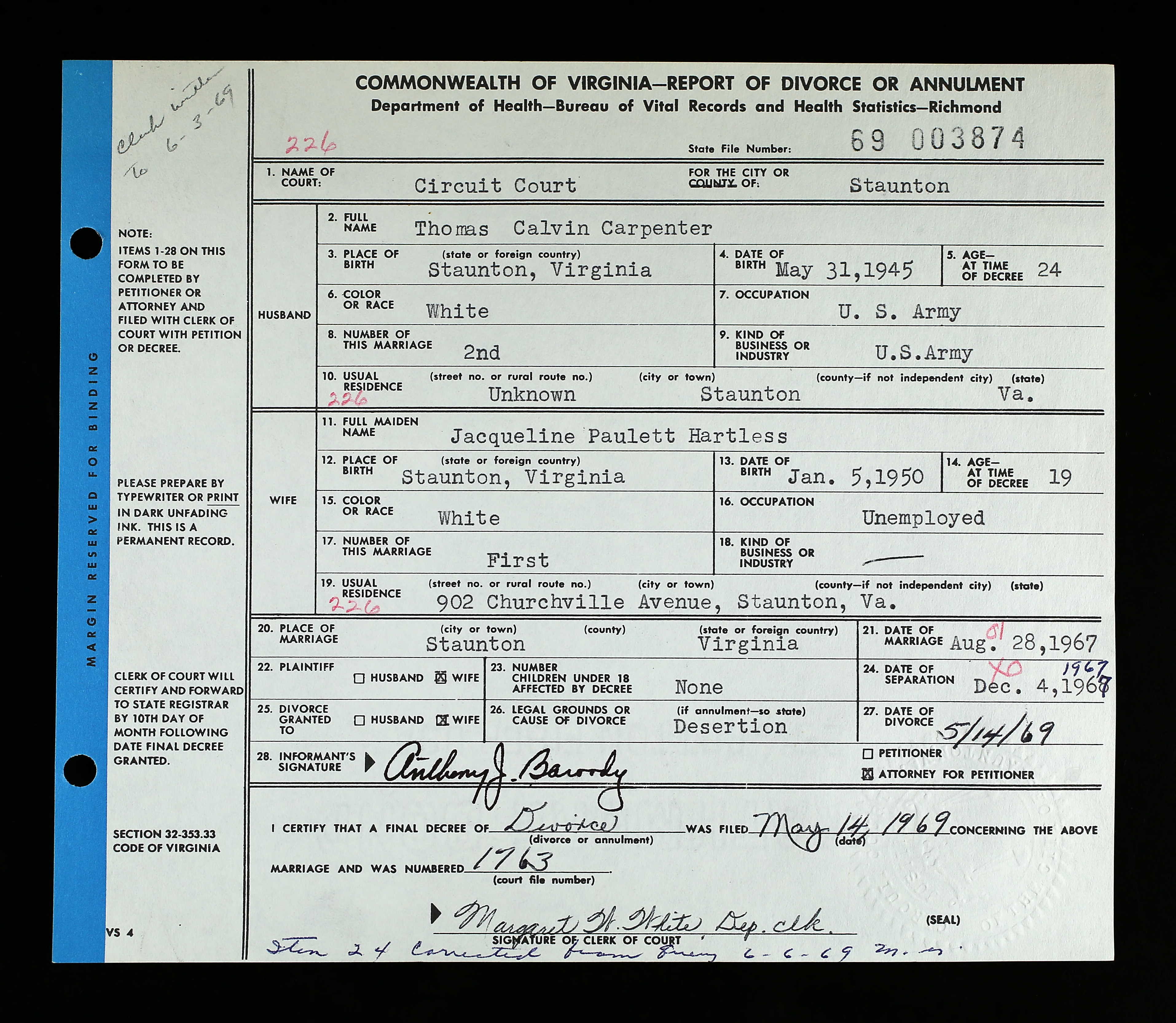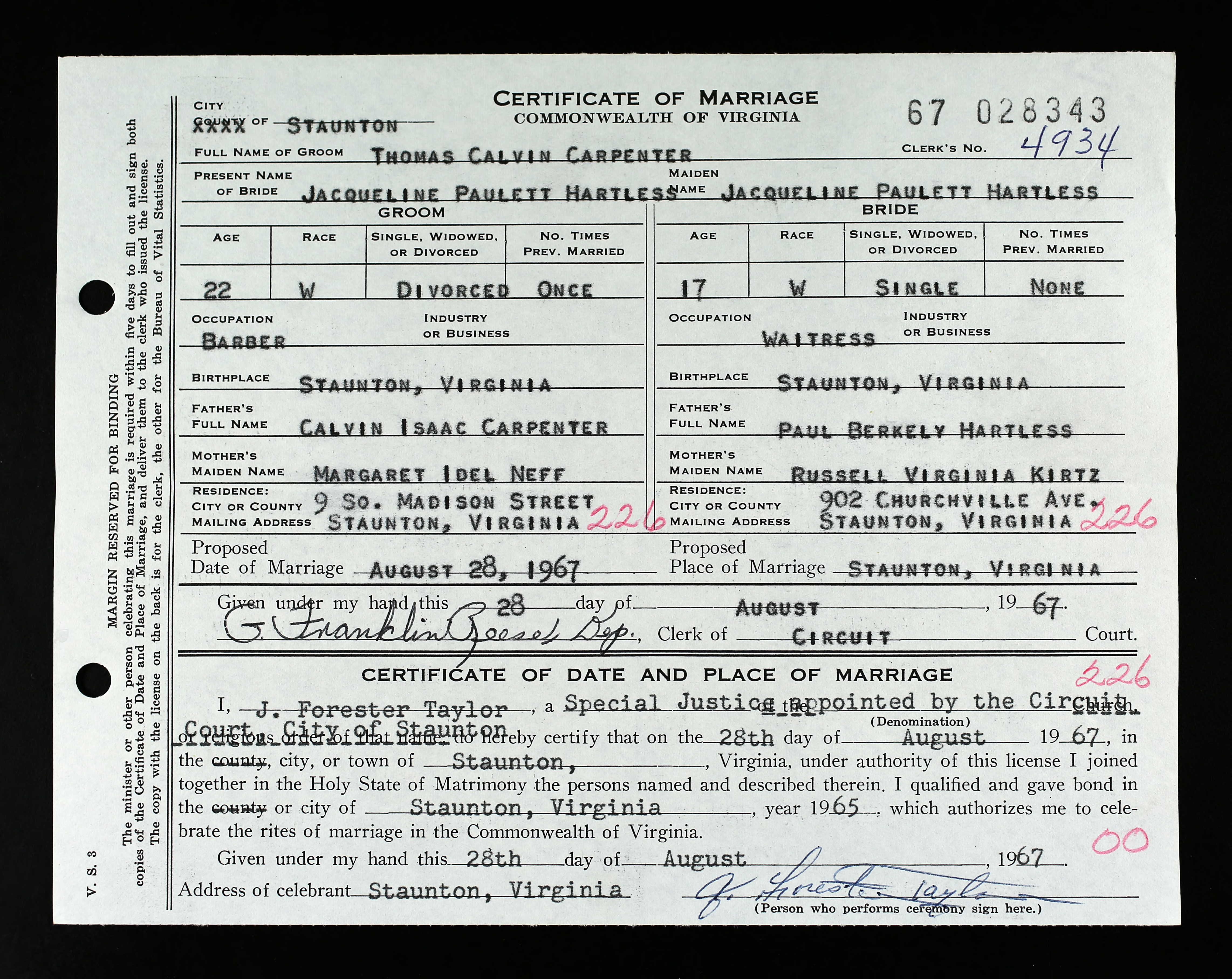 | 28 Aug 1967 - Staunton, Augusta, Virginia | |