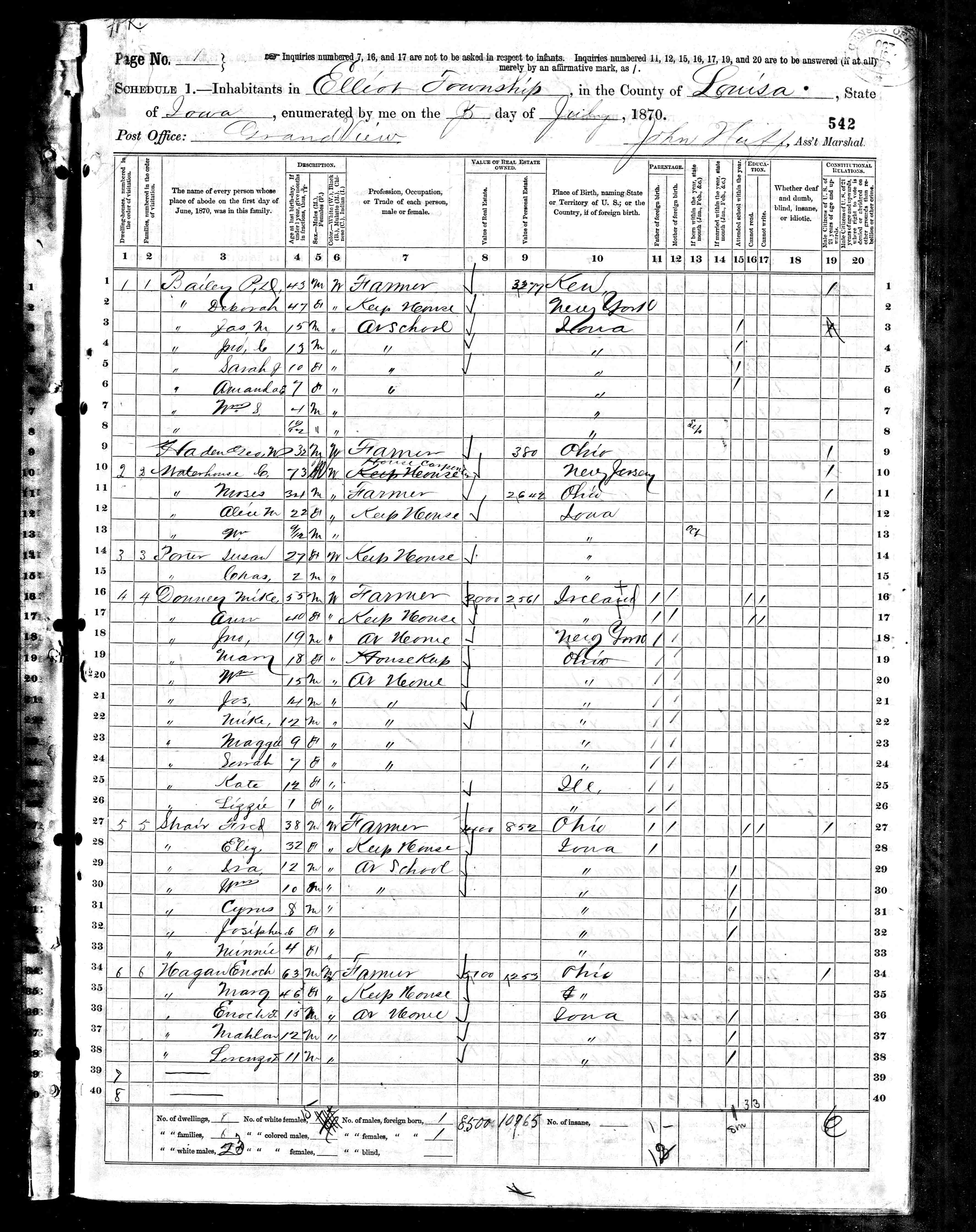 Residences1838 - Ohio | 1850 - Burlington, Des Moines, Iowa 1870 - Eliot, Louisa, Iowa 1880 - Wapello, Louisa, Iowa 1900 - Wapello, Louisa, Iowa 1910 - Berkley, Alameda, California |