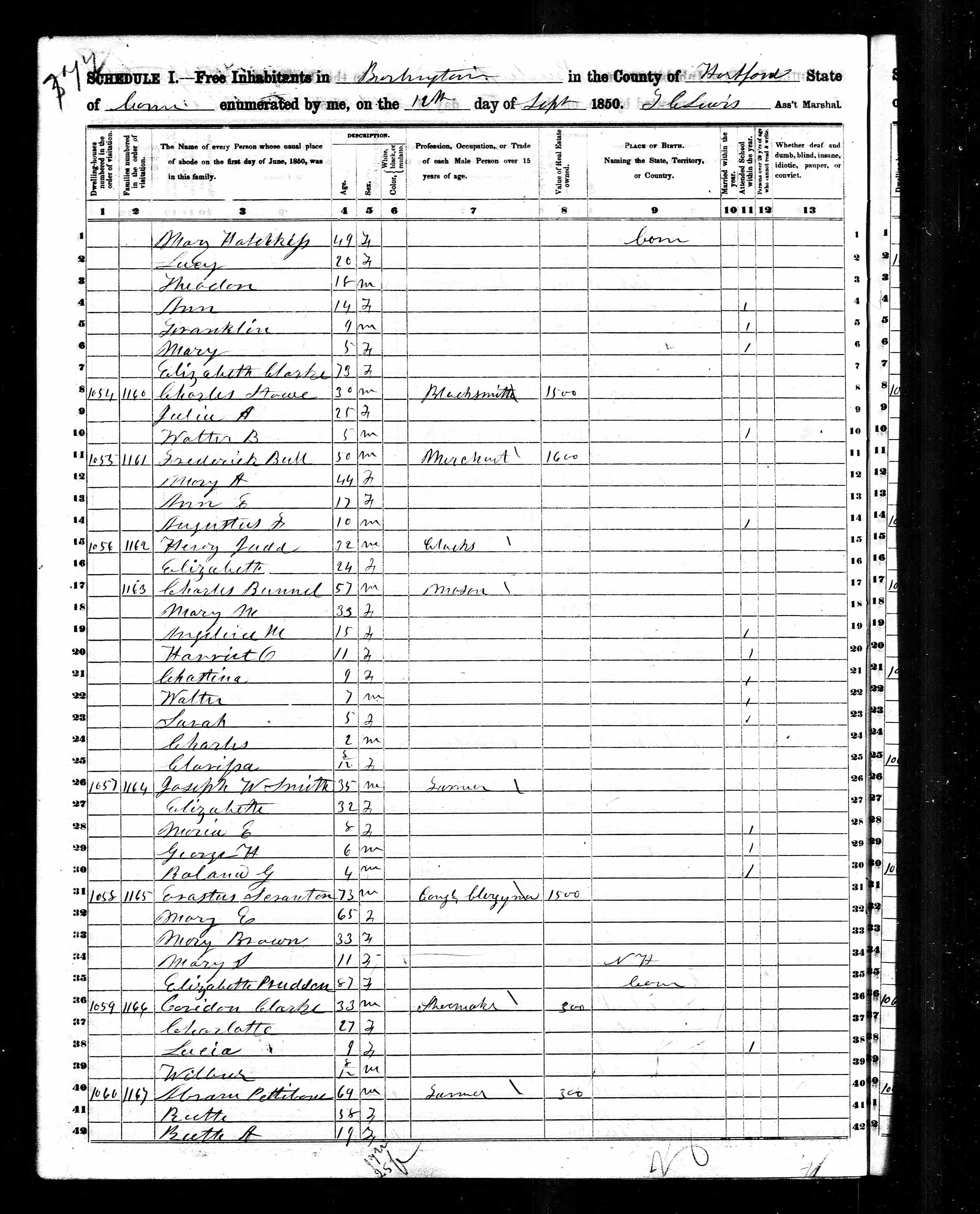 Residences1805 - Plainfield, Windham, Connecticut | 1850 - Burlington, Hartford, Connecticut 1853 - Burlington, Connecticut |