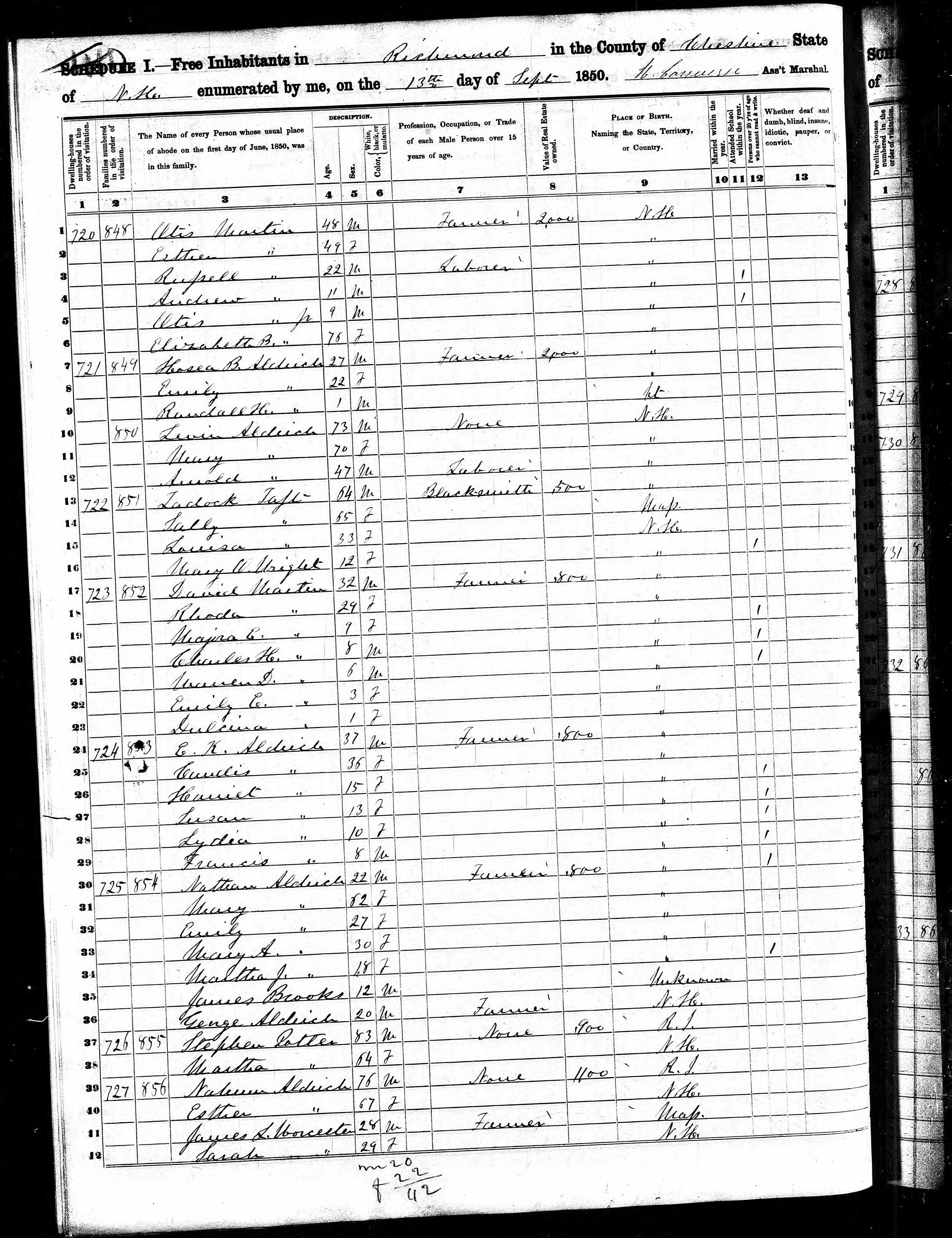 Residences1823 - Richmond, New Hampshire | 1850 - Richmond, Cheshire, New Hampshire 1860 - Richmond, Cheshire, New Hampshire 1870 - Fitchburg, Worcester, Massachusetts 1880 - Jaffrey, Cheshire, New Hampshire 1881 - Jaffrey, New Hampshire |