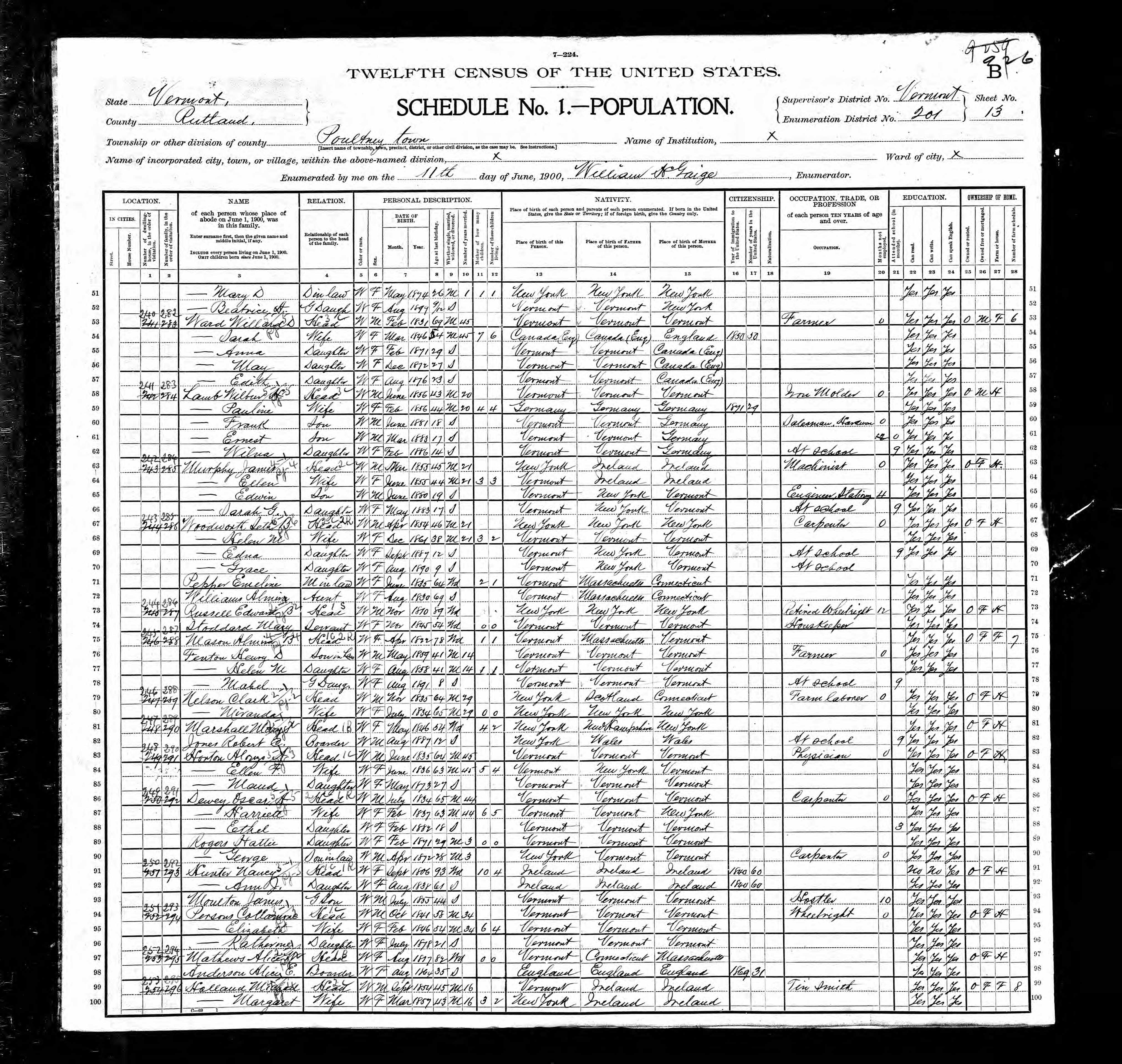 Residences1819 - Vermont | 1850 - Pawlet, Rutland, Vermont 1860 - Pawlet, Rutland, Vermont 1870 - Pawlet, Rutland, Vermont 1880 - Pawlet, Rutland, Vermont |