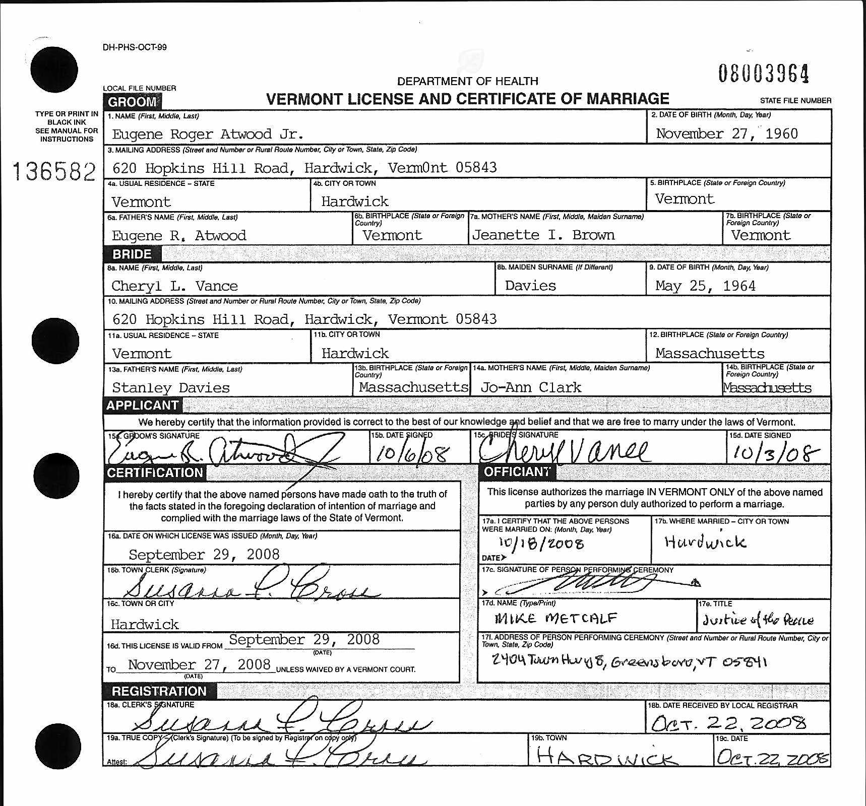 Eugene Roger Atwood Jr - Karen Elizabeth Colburn - Cheryl L. Davies