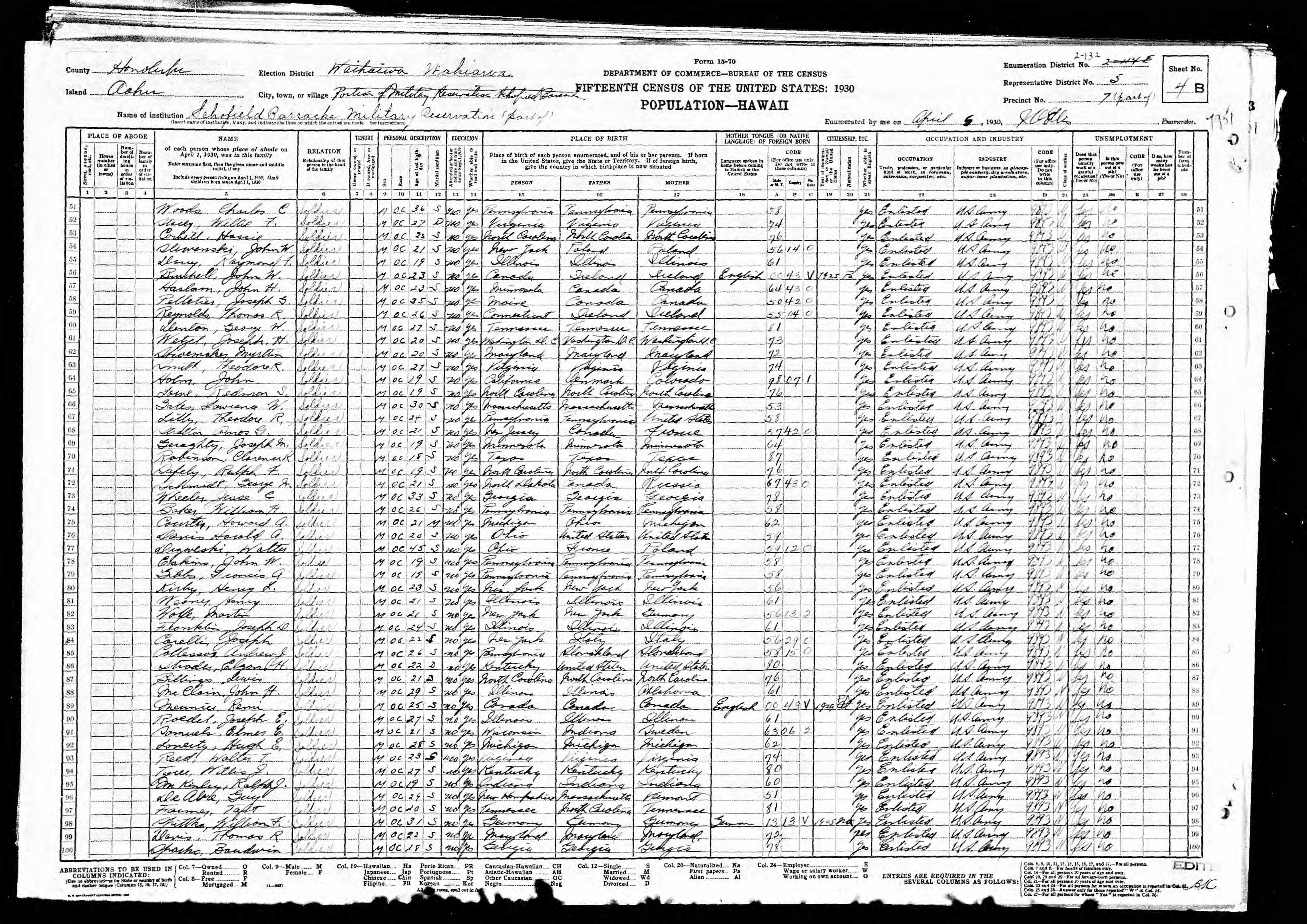 1930 - Schofield Barracks, Honolulu, Hawaii