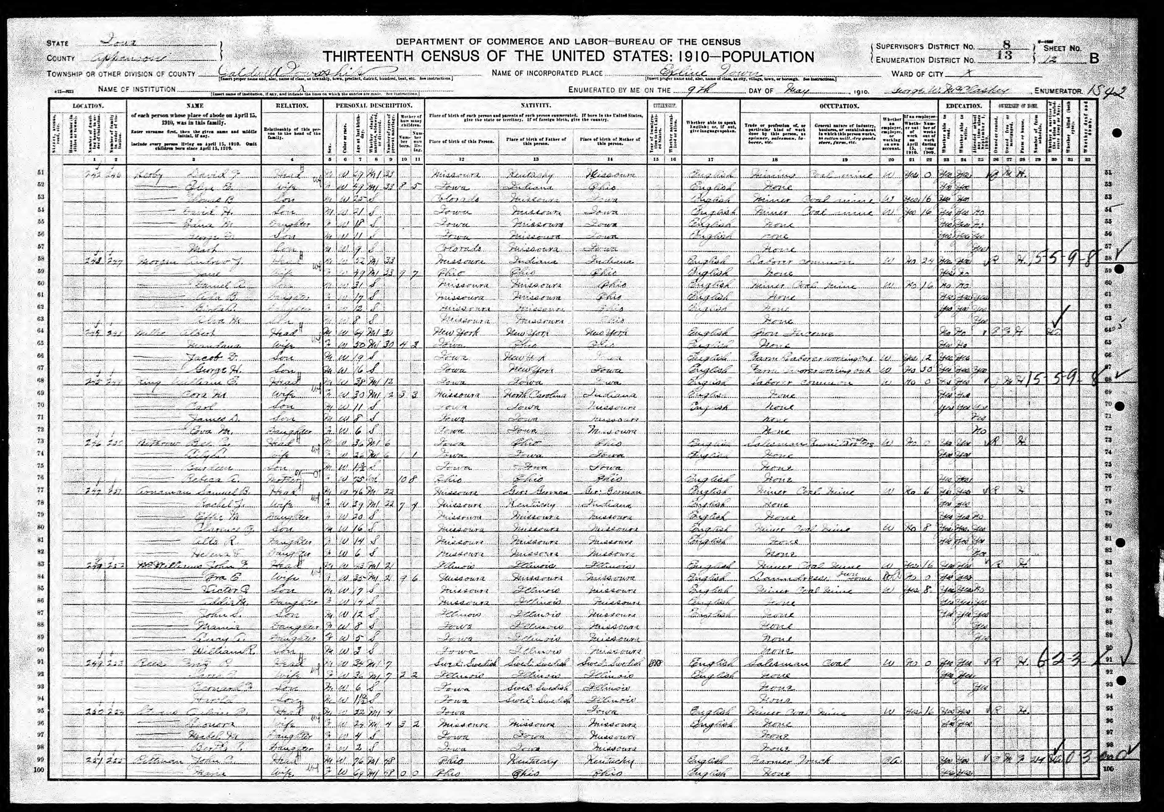 Residences1899 - Iowa | 1900 - Pleasant, Appanoose, Iowa 1910 - Caldwell, Appanoose, Iowa 1930 - Kenosha, Kenosha, Wiscosin |