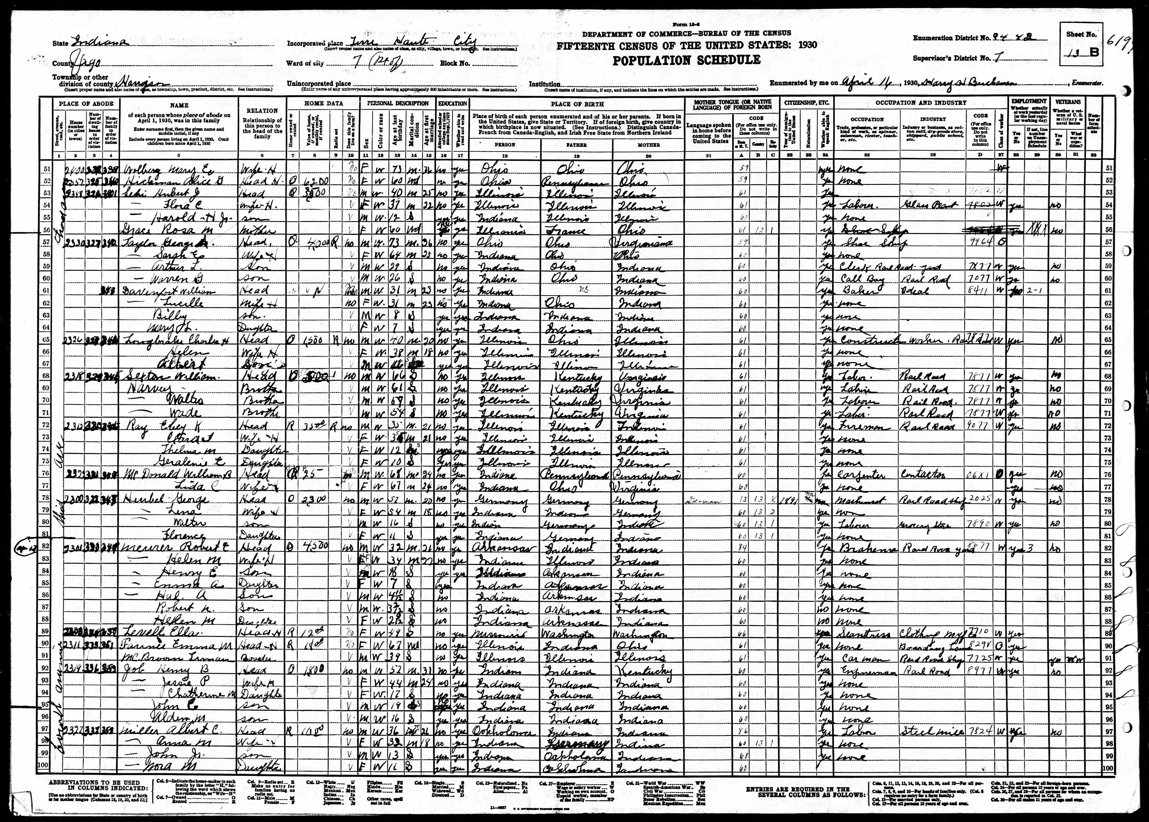 Residences1857 - Jackson, Ohio | 1860 - Jackson, Jackson, Ohio 1880 - Terre Haute, Vigo, Indiana 1910 - Terre Haute, Vigo, Indiana 1920 - Terre Haute, Vigo, Indiana 1930 - Terre Haute, Vigo, Indiana 1932 - Terre Haute, Vigo, Indiana |