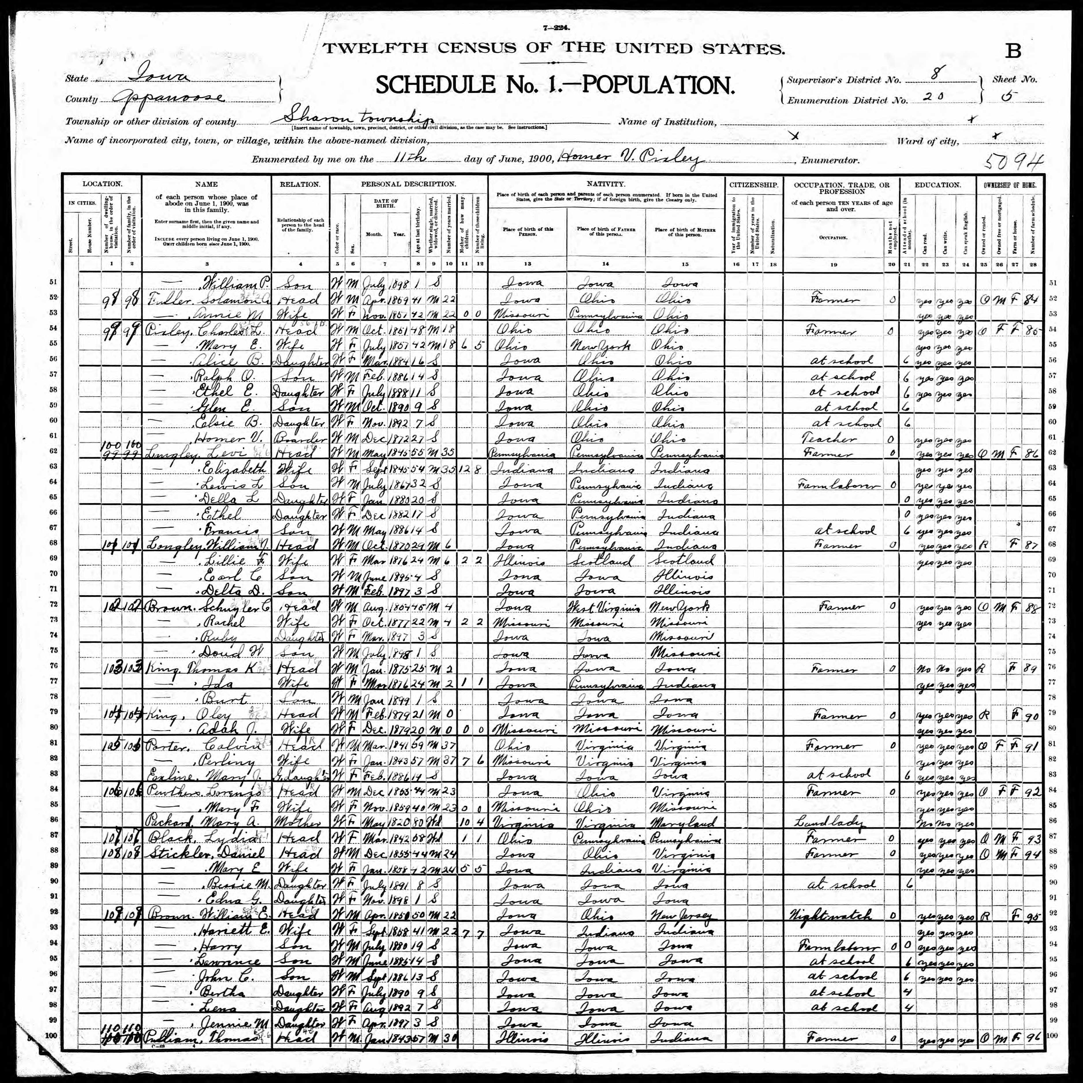 Residences1875 - Appanoose, Iowa | 1880 - Caldwell, Appanoose, Iowa 1900 - Sharon, Appanoose, Iowa 1910 - Sharon, Appanoose, Iowa 1920 - Sharon, Appanoose, Iowa 1929 - Appanoose, Iowa |