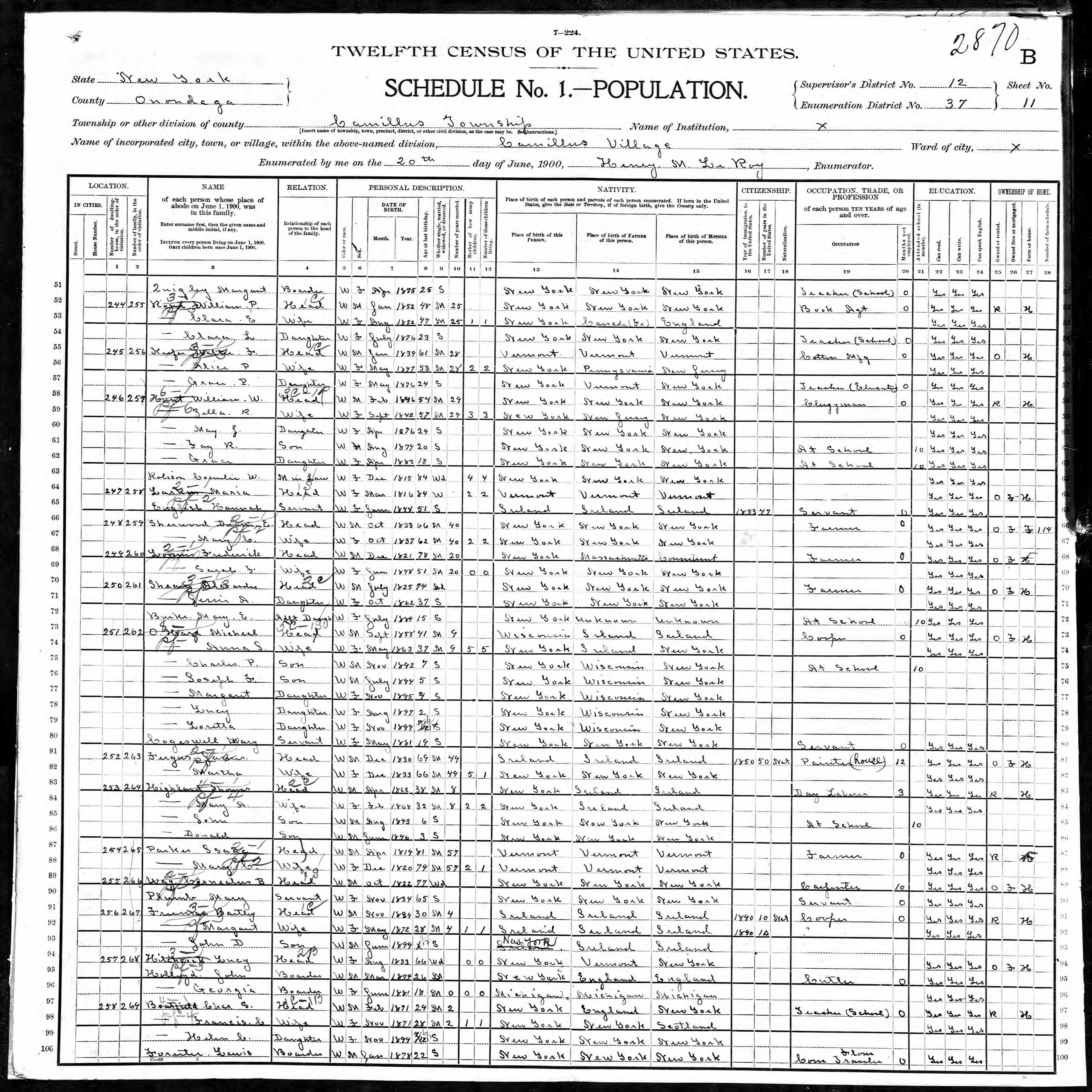 Residences1820 - Vermont | 1850 - Camillus, Onondaga, New York 1860 - Camillus, Onondaga, New York 1870 - Camillus, Onondaga, New York 1880 - Camillus, Onondaga, New York 1900 - Camillus, Onondaga, New York 1911 - Camillus, New York |