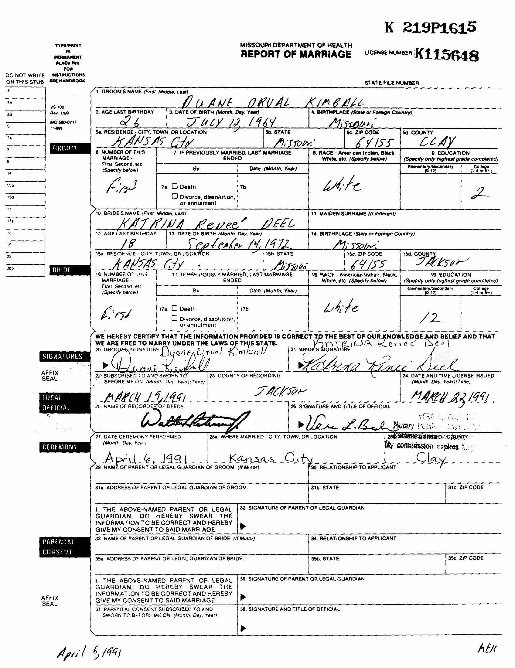 6 Apr 1991 - Kansas City, Clay, Missouri