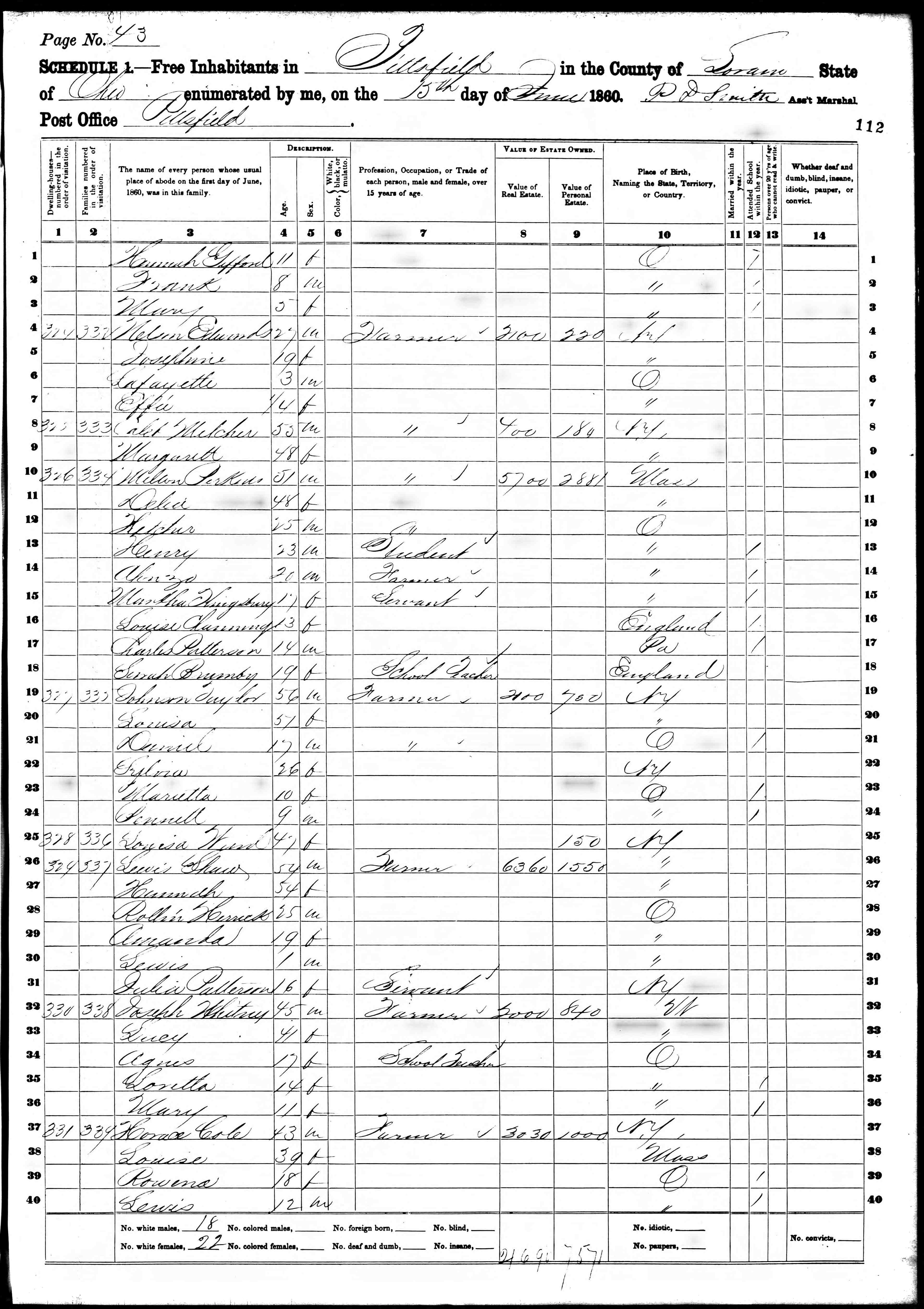 Residences1847 - York, Ohio | 1850 - York, Medina, Ohio 1860 - Pittsfield, Lorain, Ohio 1870 - Penfield, Lorain, Ohio 1880 - Pittsfield, Lorain, Ohio 1900 - Pittsfield, Lorain, Ohio |