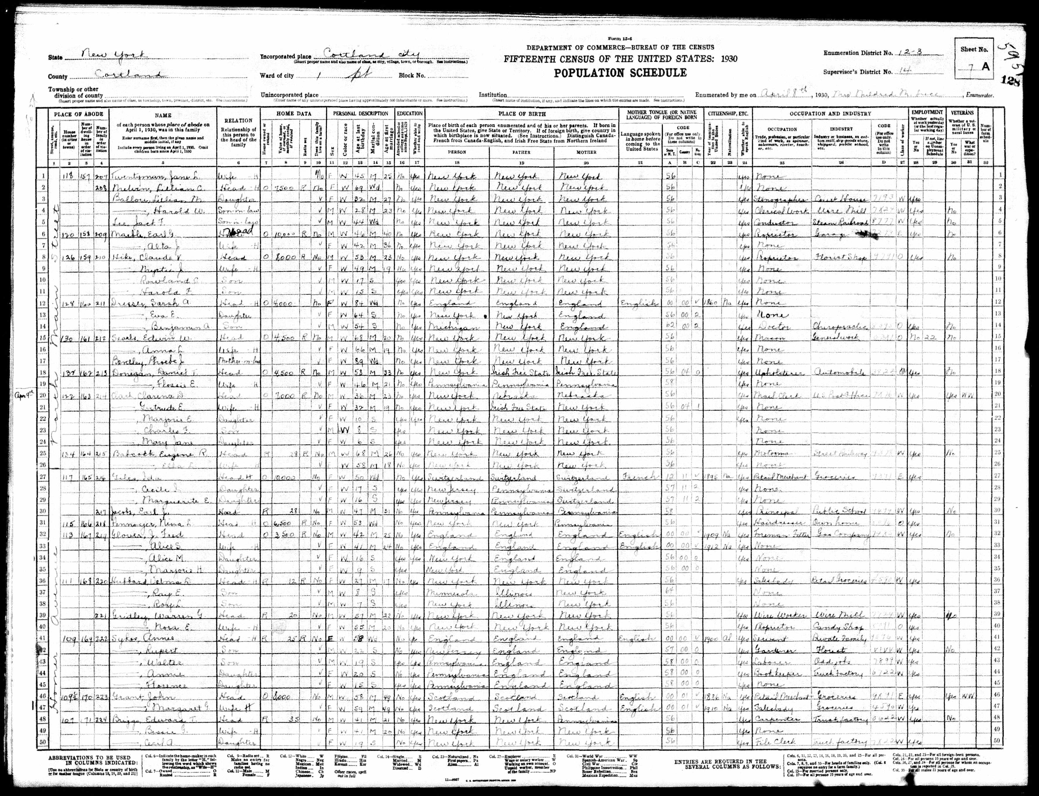 Residences1914 - New York | 1920 - Rochester, Monroe, New York 1930 - Cortland, Cortland, New York 1940 - Dryden, Tompkins, New York 2000 - Vallejo, Solano, California |