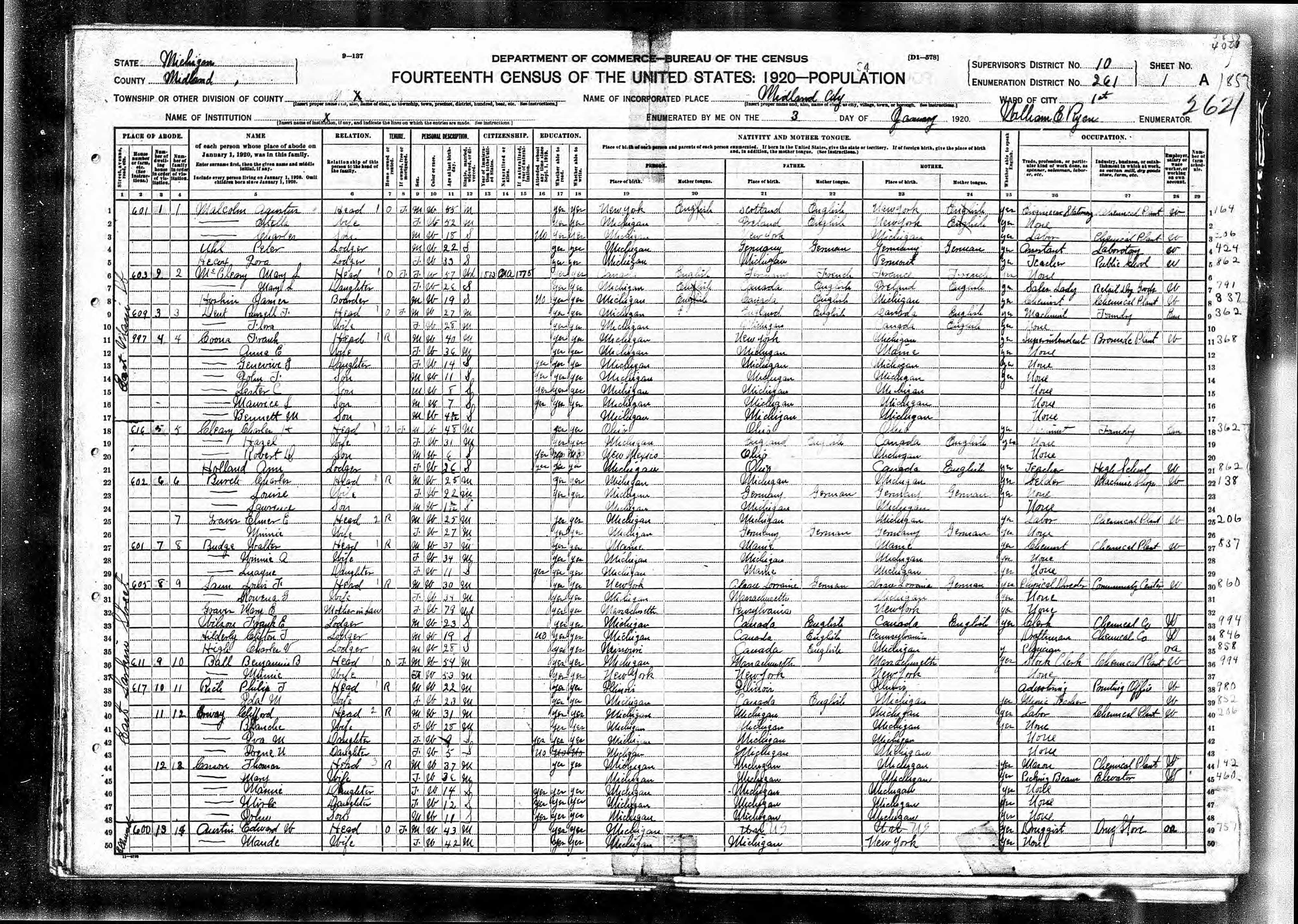 Residences1900 - Hersey, Osceola, Michigan | 1910 - Hersey, Osceola, Michigan 1920 - Midland, Midland, Michigan 1930 - Midland, Midland, Michigan 1940 - Midland, Midland, Michigan 1993 - Sonoma, Sonoma, California, USA |