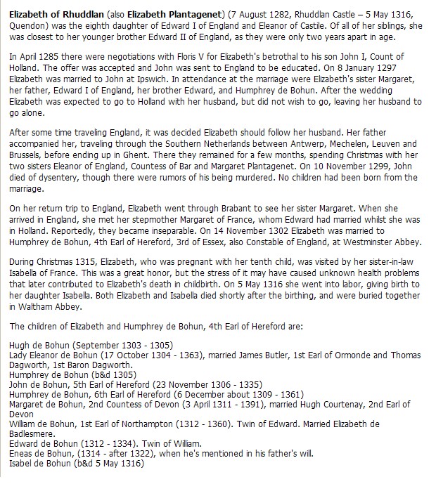 Elizabeth Plantagenet - John Floris - Humphrey de Bohun