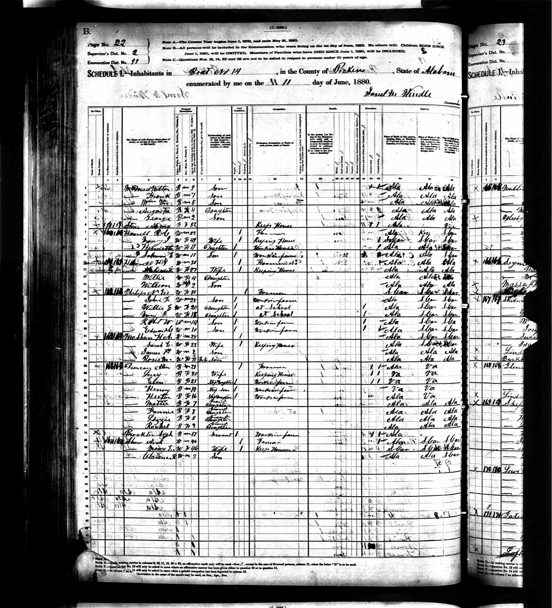 Residences1878 - Alabama | 1880 - Carrollton, Pickens, Alabama 1900 - Beards, Pickens, Alabama 1910 - Pickens Carrollton, Alabama 1920 - Brooksville, Noxubee, Mississippi 1930 - Mound City, Crittenden, Arkansas |